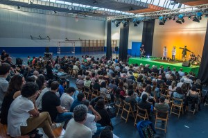 2017-05-13, Lemoa. Lemoa 80. urteurrena, ekitaldia. Irudian Arkaitz Estiballes, bertsolaria.