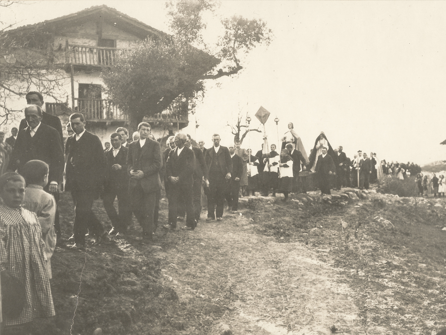 Hace más de 100 años Lemoa era muy distinto. En la imagen se ve una procesión el día 31 de julio llegando a la ermita de San Inazio, del siglo XVIII y situada en el barrio del mismo nombre, cerca de la ermita actual, aunque en un emplazamiento diferente. La nueva ermita se construyó en 1965.