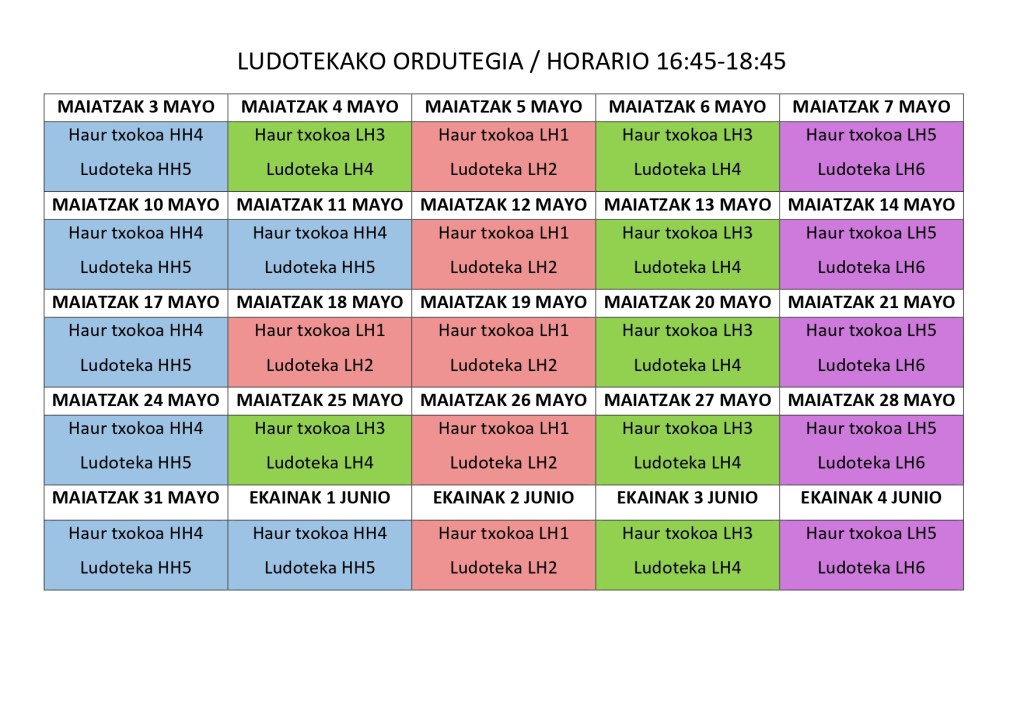 Ludotekako ordutegia