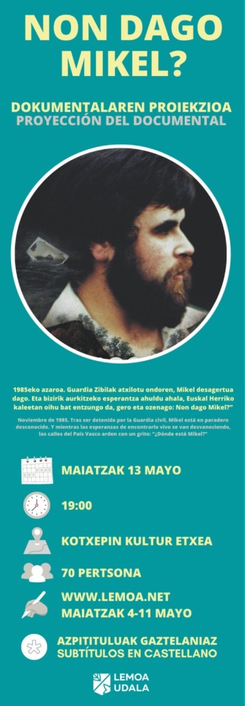 1985. Guardia Zibilak atxilotu ondoren, Mikel desagertua dago. Eta bizirik aurkitzeko esperantza ahuldu ahala, Euskal Herriko kaleetan oihu bat adituko da gero eta ozenago: Non dago Mikel?”