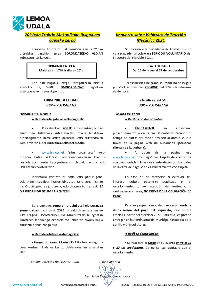 IMPUESTO SOBRE VEHICULOS DE TRACCIÓN MECÁNICA 2021