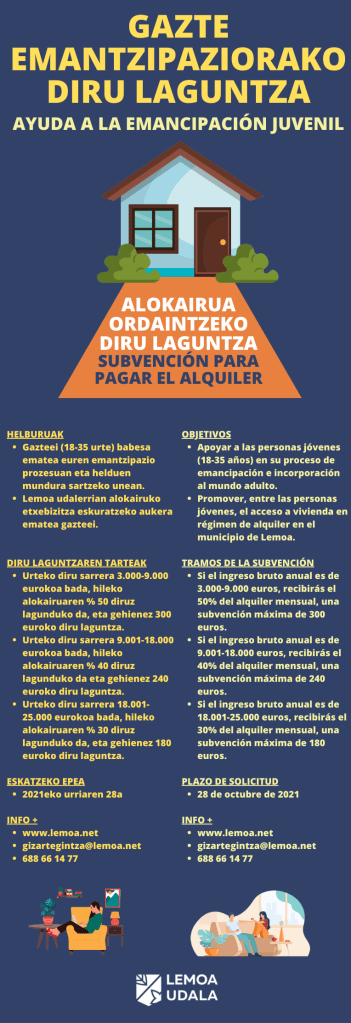 - Alokairurako beste laguntzarik ez jasotzea.
