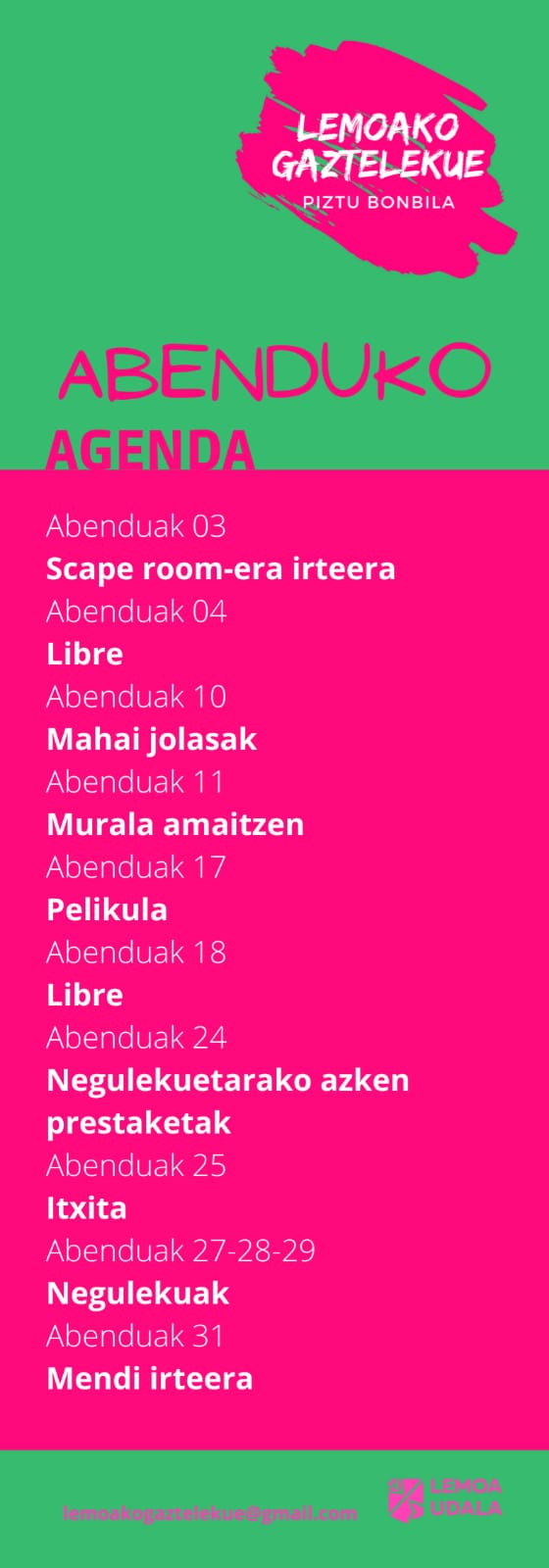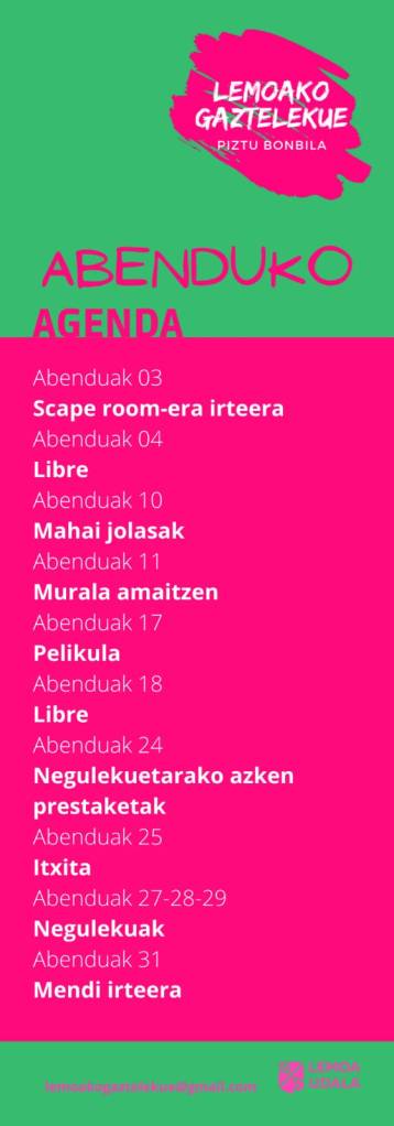 LEMOAKO GAZTELEKUE – ABENDUKO AGENDA
