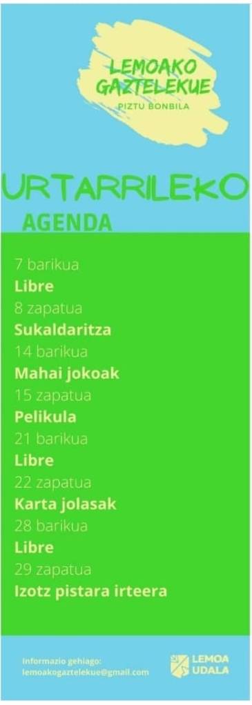 Gaztelekue: urtarrileko egitaraua – Programación enero