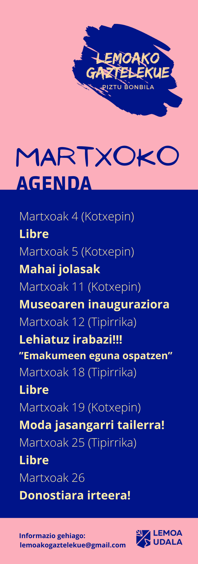 Lemoako Gaztelekue – Martxoko Agenda
