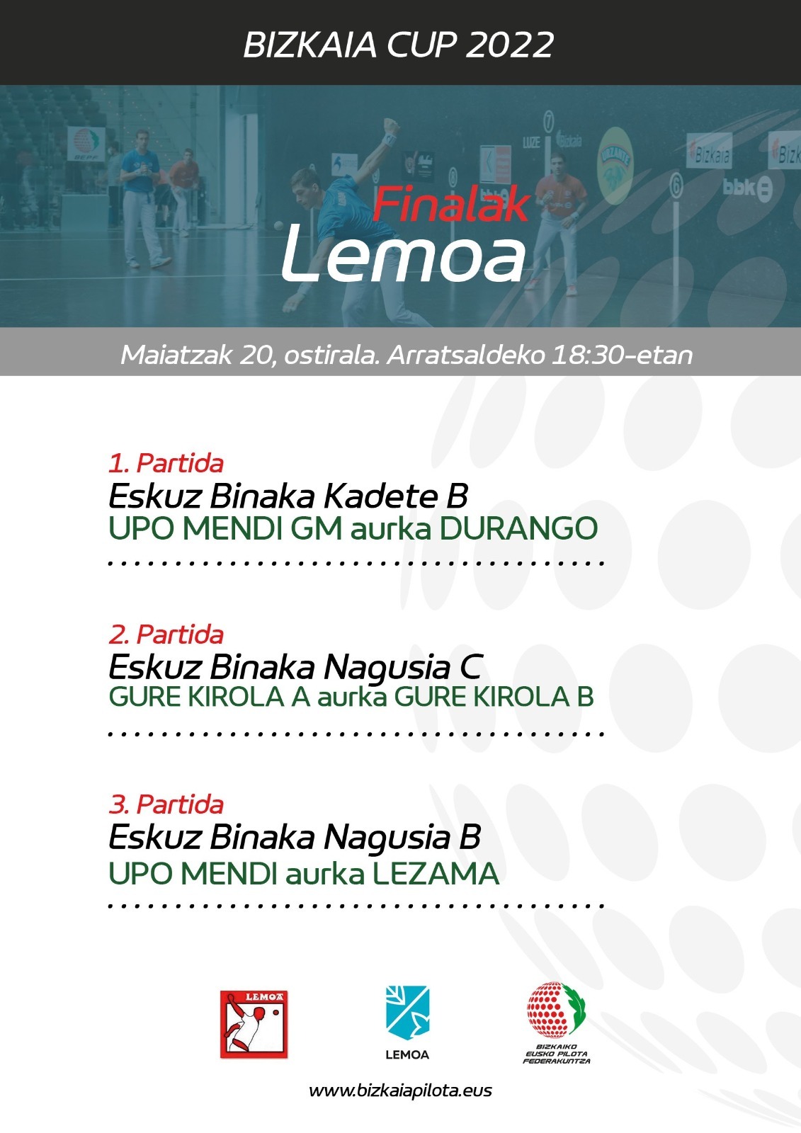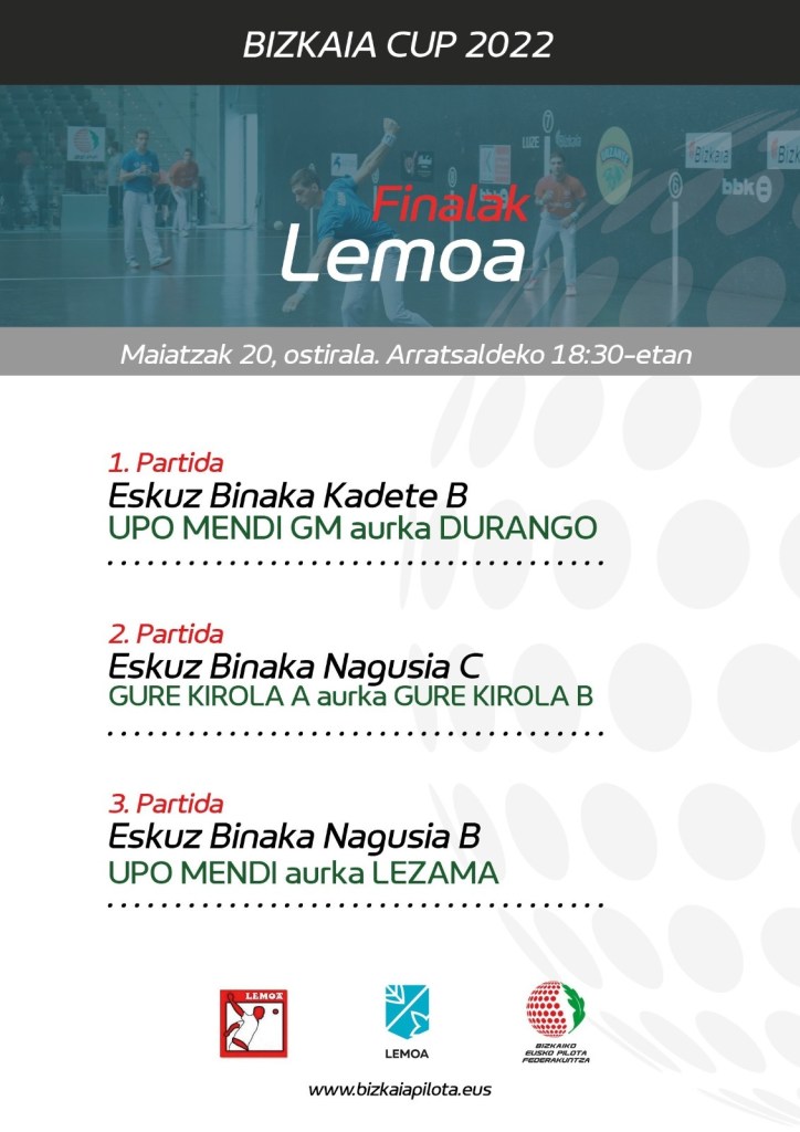 [EUS] Bizkaia Cup Txapelketako eskuz binaka zenbait final Lemoako frontoian jokatuko dira gaur.