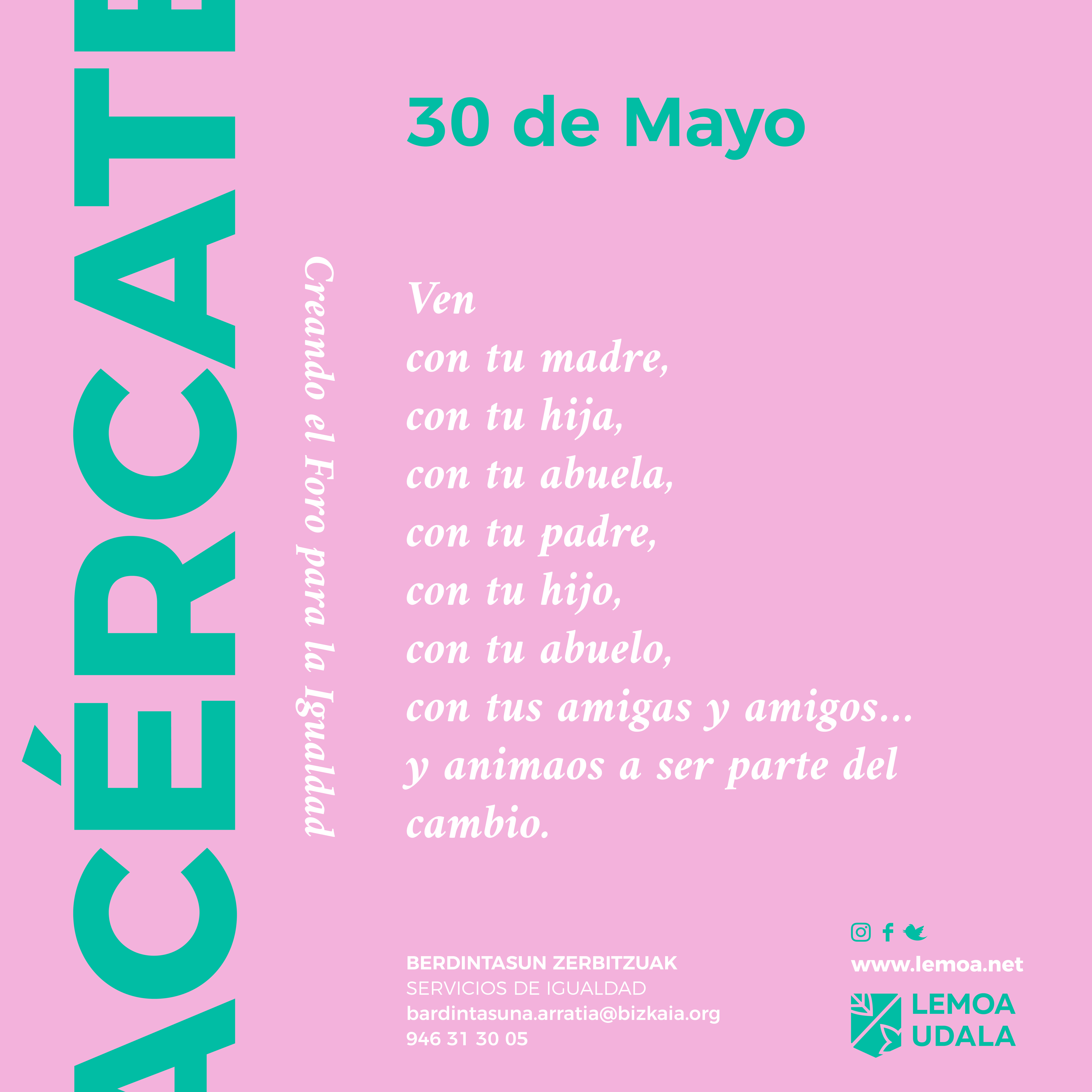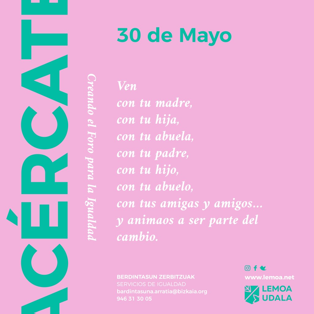 Hori dela eta, Lemoako Berdintasunerako Foroa sortzeko eta diseinatzeko bi saio egingo dira maiatzean. Lehena maiatzaren 16an egin zen, eta bigarrena 30ean egingo da.