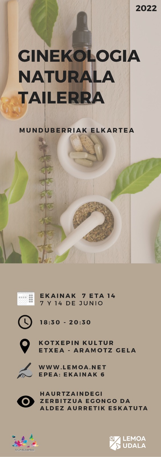 Tailer honek aukera emango dizu modu errazean, elementu naturalak (belarrak, buztina, olioak, etab.) ezagutzeko. Helburua ez da medikuntza tradizionala baztertzea, gure gorputza eta natura hobeki ezagutzea baizik, honen osagarria izanik.