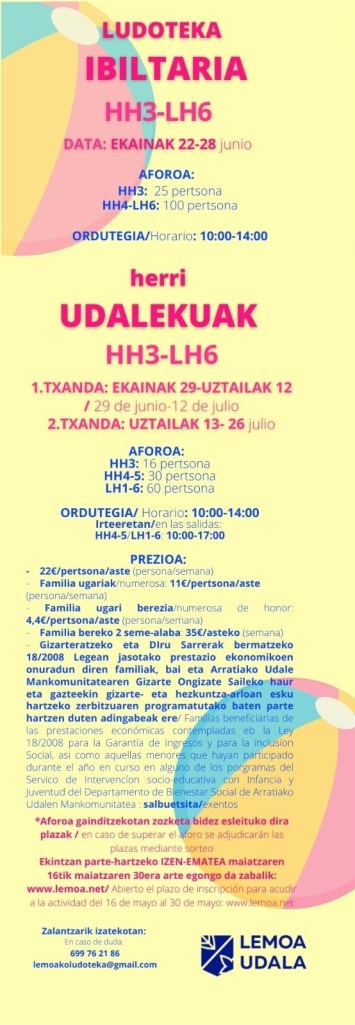 Herri udaleku eta ludoteka ibiltarian izena eman duten haur eta gazte guztiak onartuak izan dira – Admitidas todas las inscripciones para “Herri Udalekuak” y “Ludoteka Ibiltaria”