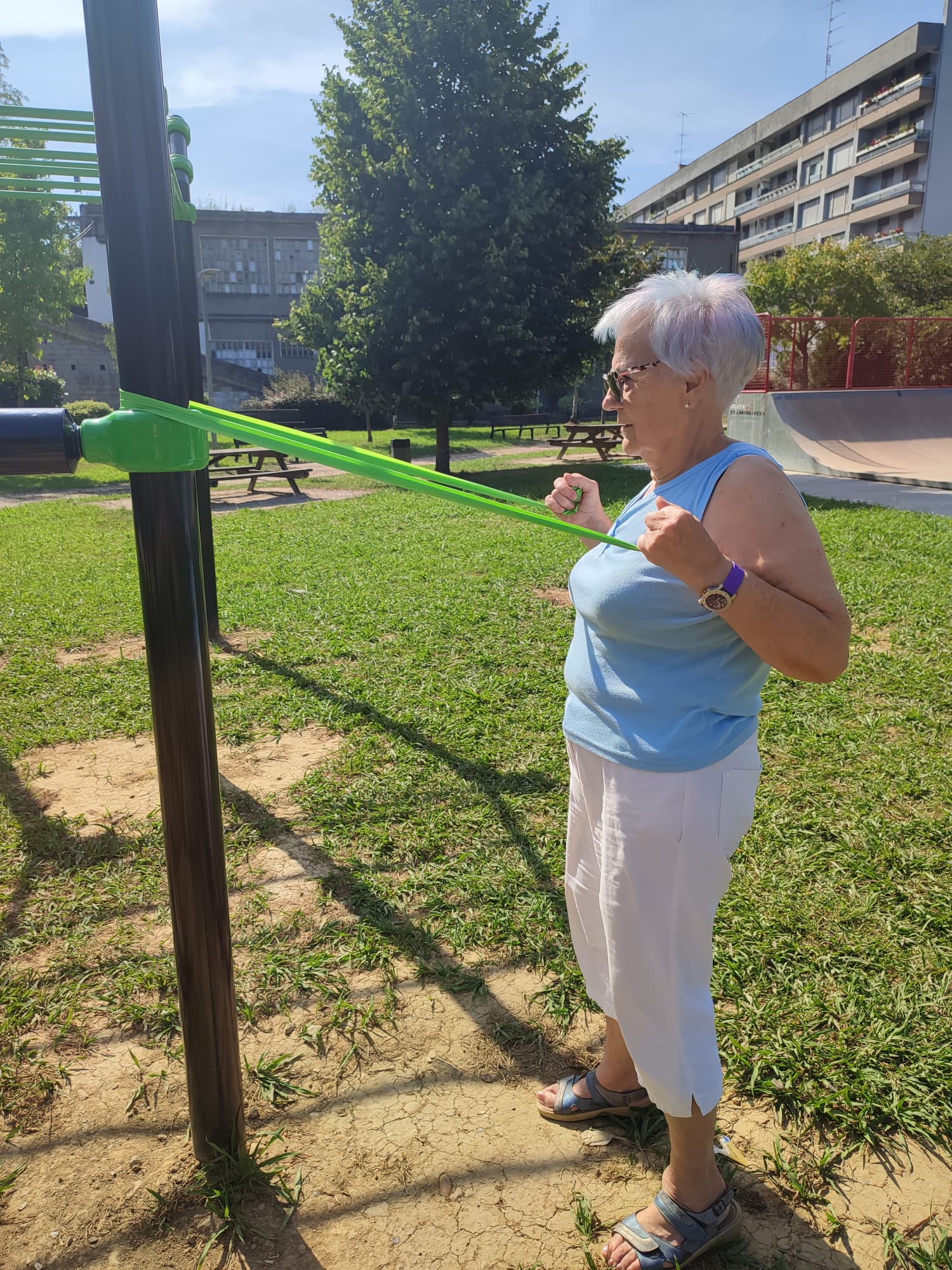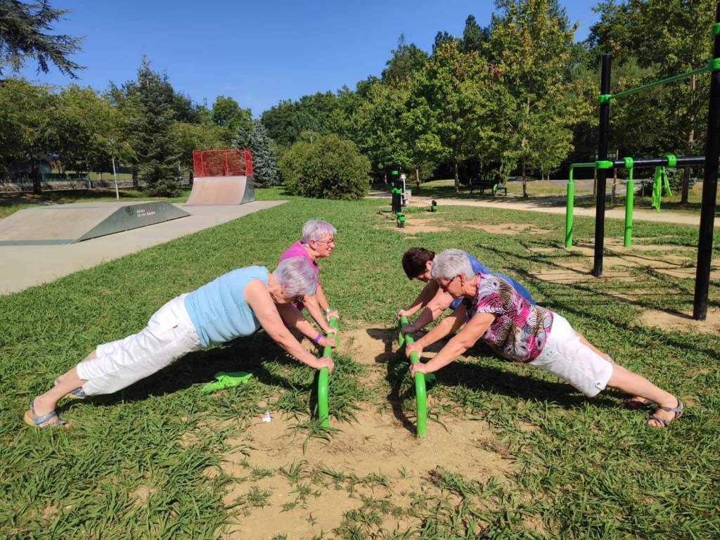 Kalistenia adin guztientzat aproposa dela erakutsi zuten hirugarren adineko lemoaztarrek – Los y las lemoaztarras de la tercera edad demostraron que el parque de calistenia es adecuado para todas las edades