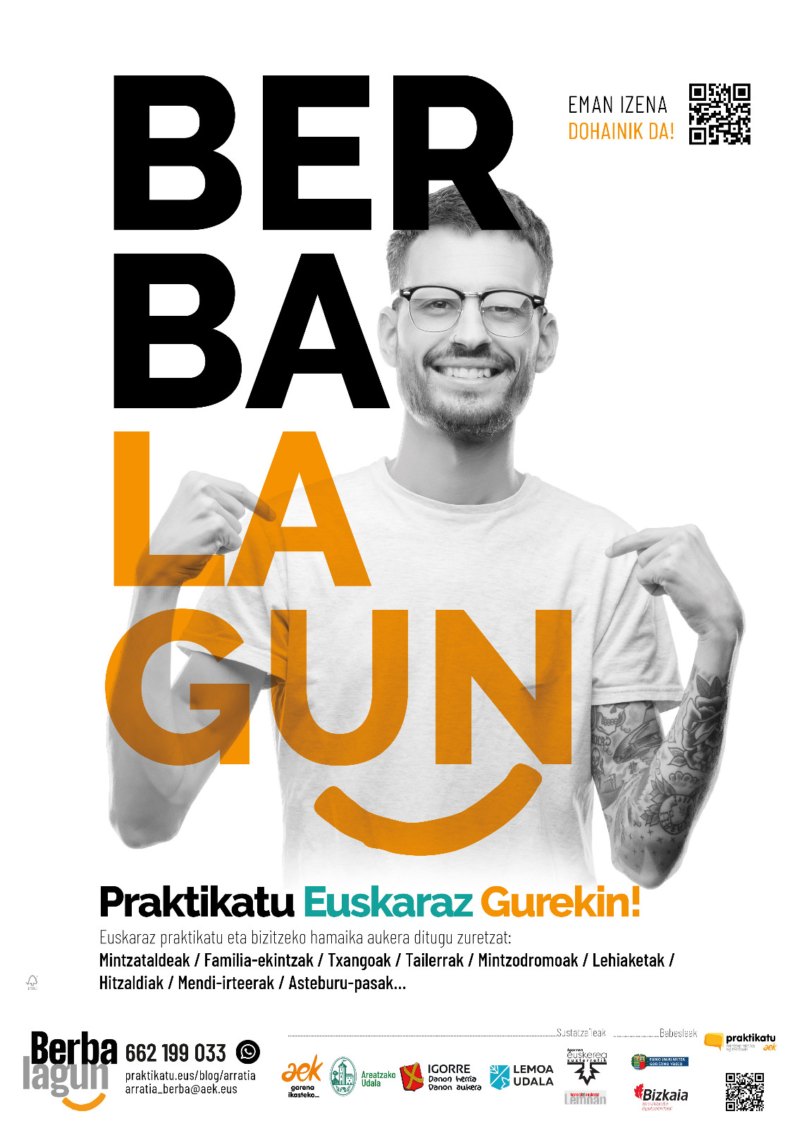 [eus] Hasi da 2022-23 ikasturtea eta Arratiako Berbalagun taldeak urrian hasiko dira geratzen, animatuko zara? Matrikulazioa dohainik da, eta proiektua adin guztietako jendearentzat pentsatuta dago. Gainera, hamaika abantaila daude: deskontuak, opariak… Hilero-hilero 10 SARI-KUTXA zozketatuko dira, esaterako.