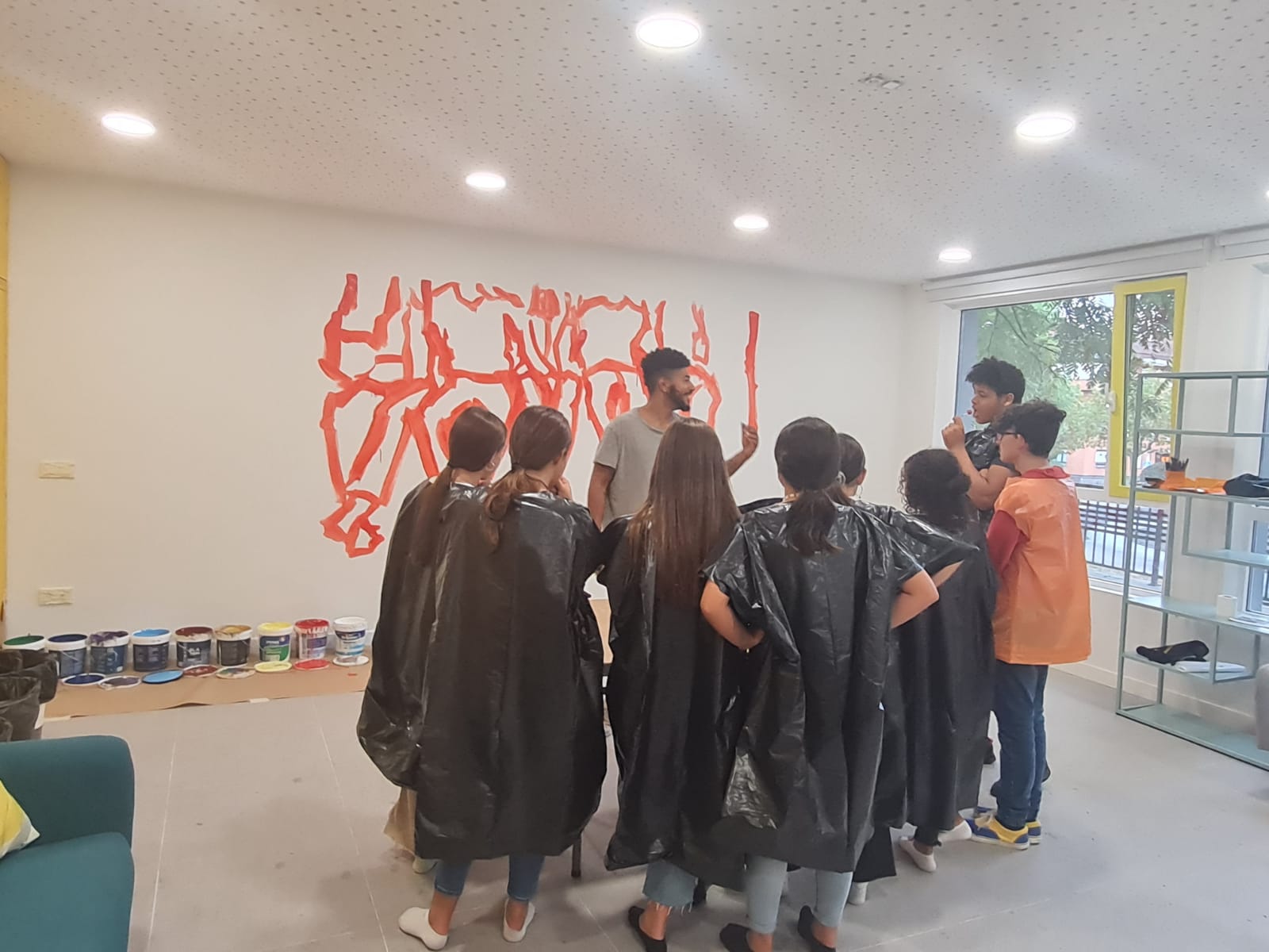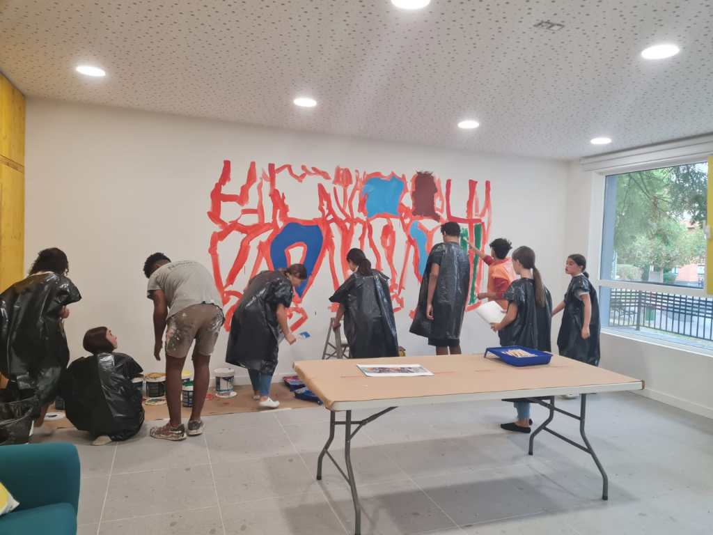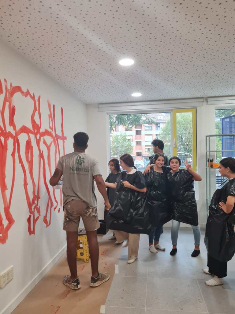Gaztelekuko gazteek euren ukitua eman diote eraikinari mural eder bat osatuz (argazkiak) – Los y las jóvenes del Gazteleku han dado su toque al edificio pintando un precioso mural (fotos)