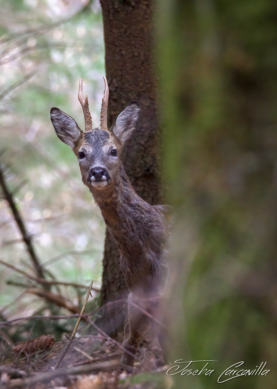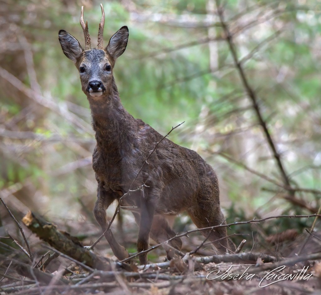 Y la tercera es una foto, bueno, más que una es una serie de cinco fotos que le realicé hace un par de años en plena pandemia a un corzo en el parque natural de Urkiola. Había visto tantas fotos de gente que había fotografiado corzos que me propuse hacerlo pero sin escondite ni nada, solo al rececho. Cuando iba paseando por una zona en la cual había oído los ladridos (así se le llama a la llamada del corzo), me encontré con un corzo que estaba comiendo. Yo iba camuflado y me arrodillé, con la cámara apuntándole. Como escuchaba algo, se paraba y miraba hacia donde estaba yo. Me mantenía inmóvil, y en el momento en el que dejaba de mirarme, encuadraba y enfocaba. Fueron como unos 5 minutos pero con una tensión y una sensación que no se puede describir, sino que hay que vivirla.
