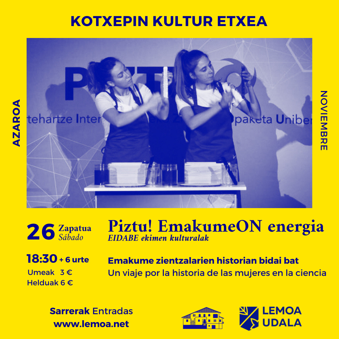 Ustezko zientzia kongresu zoro eta dibertigarri honetan bi antzezleek dena buruz gora jarriko dute eta emakume zientzialarien historian zehar nabigatuko dugu. Marie Curie ardatz eta gidari izanik, emakumeak zientzian izandako benetako pisuaz jabetuko gara eta hainbat esperimentu egingo ditugu ere. Eta bidaia honen ondoren, guztion barnean ideia berriak piztuz, makina horrek barnean gordetzen duen sekretuaz jabetuko gara beharbada…