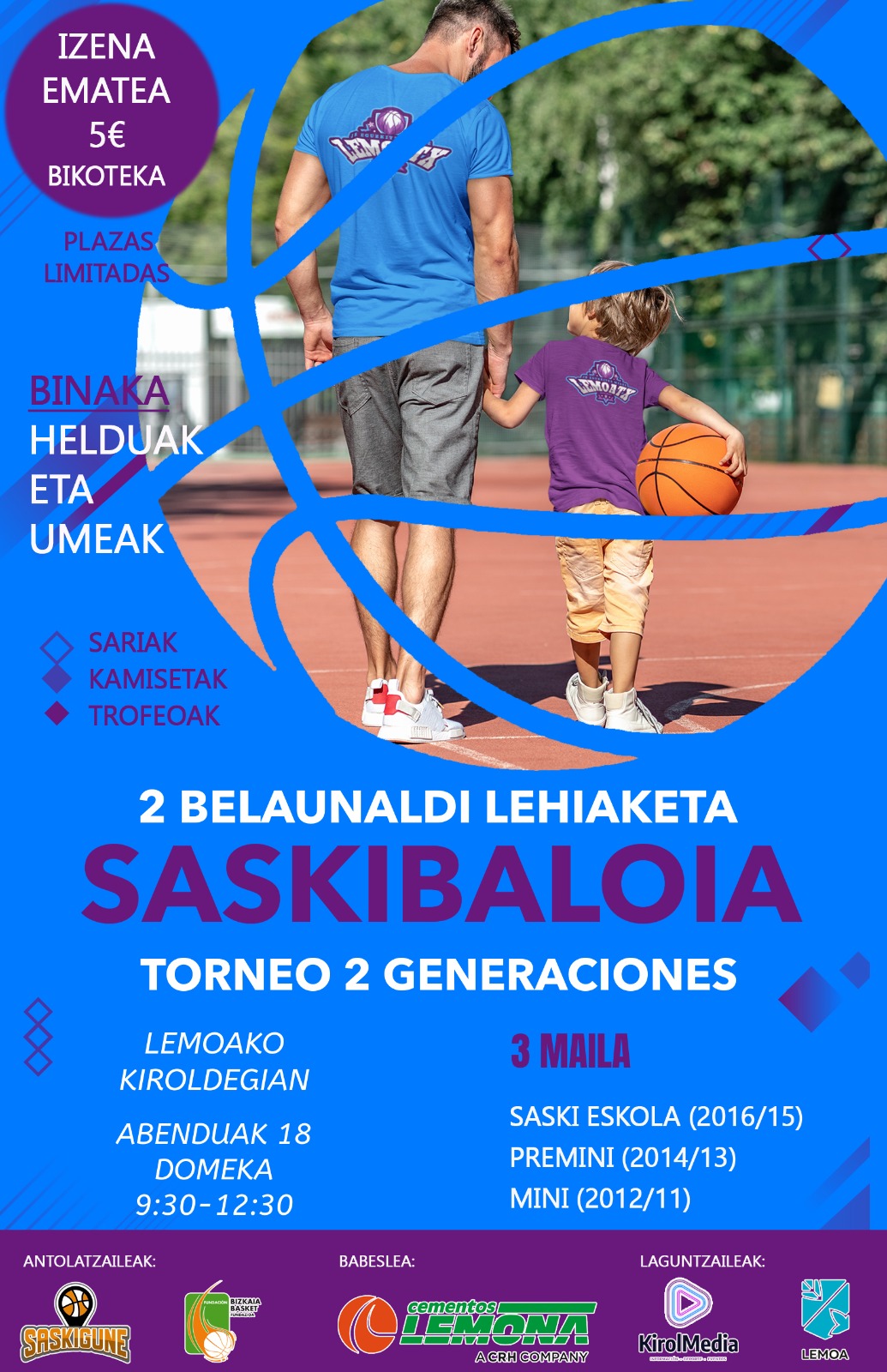 [eus] Abenduaren 18an, Lemoako kiroldegian, kirolaren promoziorako Saskigune erakundeak antolatutako 2 Belaunaldi Txapelketa ospatuko da. Ekitaldiak Cementos Lemona izango du babesle bezala eta KirolMedia eta Lemoa Udalaren laguntza ere jasoko da.