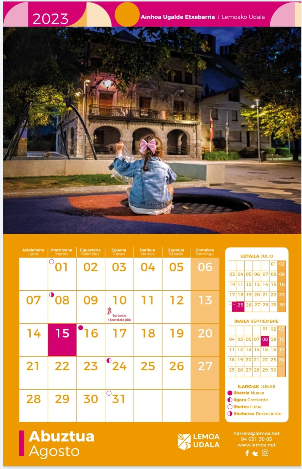 El Ayuntamiento de Lemoa repartirá el calendario de 2023 [eus] Aste honetan hasi du Lemoako Udalak postontzietako banaketa, eta etxe guztietan jasoko da egutegiaren ale bana. Behin banaketa eginda, urtarrilaren lehen astetik aurrera udaletxeko harreran eskatzeko aukera egongo da. Bestetik, argazki saridunen 12 irabazleak hasi dira udaletxera etortzen euren sariaren bila, jaki gozoz betetako otzara, … Irakurtzen jarraitu 2023ko egutegia banatuko du Lemoako Udalak