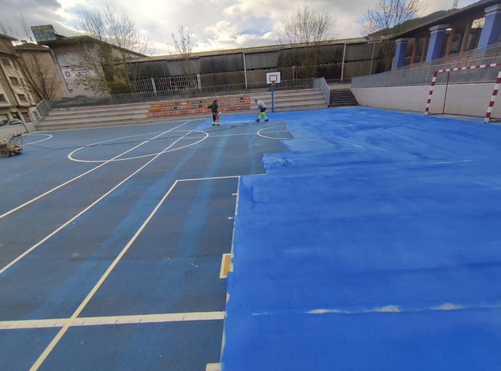 Se pintan las pistas azules junto al Ayuntamiento y el Kulturgune
