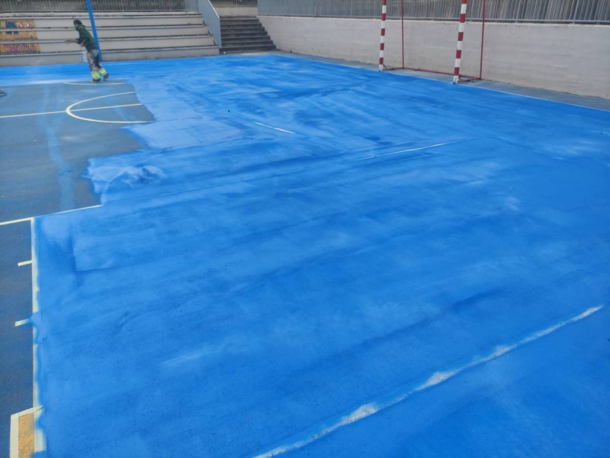 [cas] El martes comenzaron a pintar los dos campos, y el objetivo es recuperar el brillo de las pistas y evitar un mayor desgaste.
