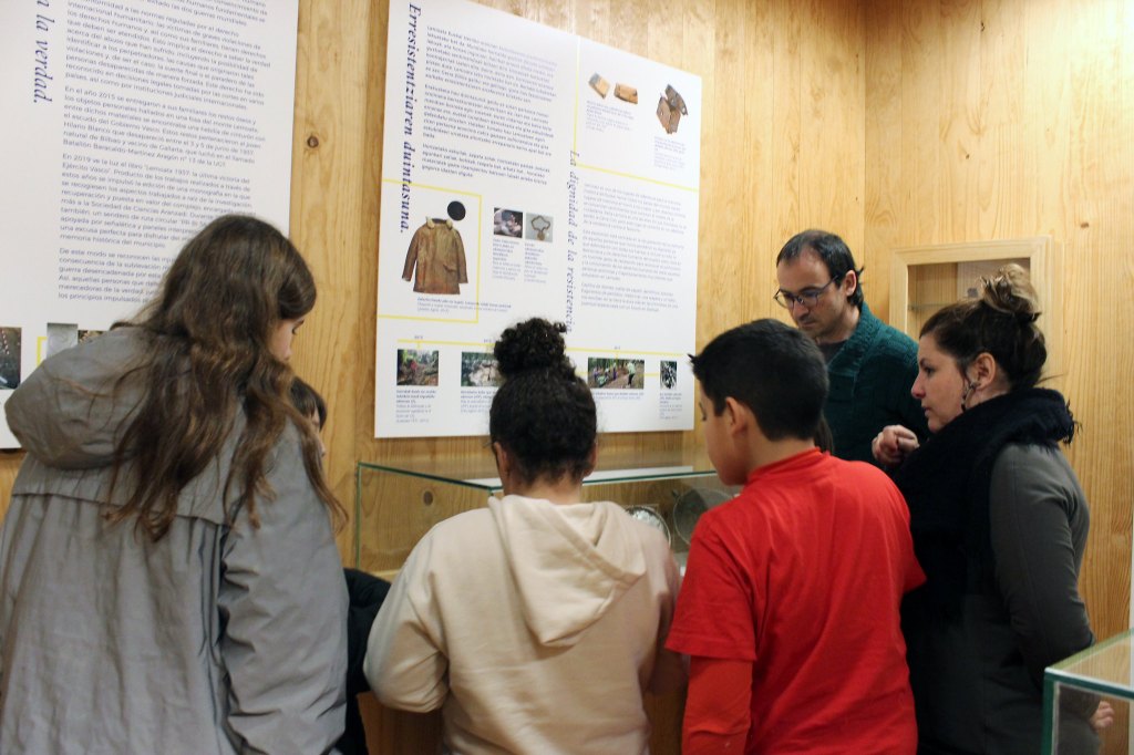Saioa Elejabarrieta, como alcaldesa de Lemoa, también estaba con nosotras en el círculo, escuchando como una más lo que tenían que contarnos, comentándolo con humor y seriedad, preguntando una y otra vez con sorpresa. Nos han contado qué es lo que más les gusta en Lemoa y qué lo que menos, y qué echan de menos en su pueblo. Nos lo hemos pasado genial. Hemos aprendido un montón, conociéndonos, creciendo, conociendo Lemoa con ojos de infancia. Antes de irnos, los y las niñas han visitado el museo de la Guerra que hay junto a nuestra sala de Kotxepin. Hemos visto explosivos que no estallaron en 1937 en Lemoatx.