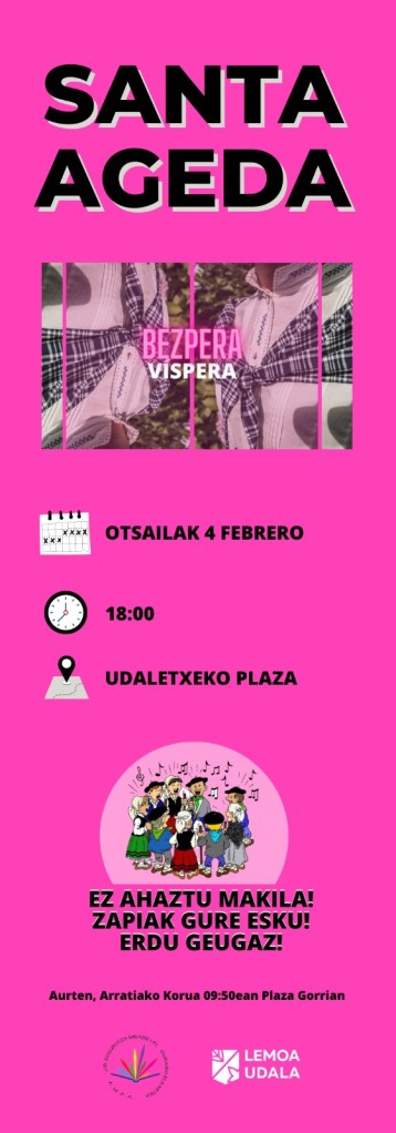 Atalak Udal buletina- Boletín digital Udal Buletina Urtarrilak 27 enero Gehiago irakurri titularraren gainean klikatuz Leer más haciendo click sobre el titular Post author Garatzailea: lemoatzen Post date 2023-01-27 Boletín Municipal Ostera(be) bueltan erabili! – ¡ Cambiemos nuestros hábitos de consumo: ¡reutiliza! Umeen begietatik ikusteko lehen ariketak – Primeros ejercicios para ver por sus ojos Ate irekien jardunaldiak JB Eguzkitza Meaben – Jornadas de Puertas Abiertas en JB Eguzkitza Meabe Santa Ageda Lemoan Lan programaren egutegia – Calendario del programa Lemoan Lan Lemoan Lan: enplegurako gune aktibo eta pertsonalizatua Lemoan erroldatutakoentzat – Lemoan Lan: un espacio activo y personalizado de empleo para personas empadronadas en Lemoa Plazerra izango da edo ez da izango – El placer será o no será Arte terapia Berbalagun-en izena eman dezakezula badakizu? Euskara praktikatzeko modu ona! – ¿Sabes que puedes apuntarte a Berbalagun? ¡Buena manera de practicar euskera! Facebook berria – Nuevo Facebook Comparte: Share on X (Opens in new window) X Share on Facebook (Opens in new window) Facebook Atsegin dut Kargatzen... ← Plazerra izango da edo ez da izango – El placer será o no será → Lemoan Lan programaren egutegia – Calendario del programa Lemoan Lan