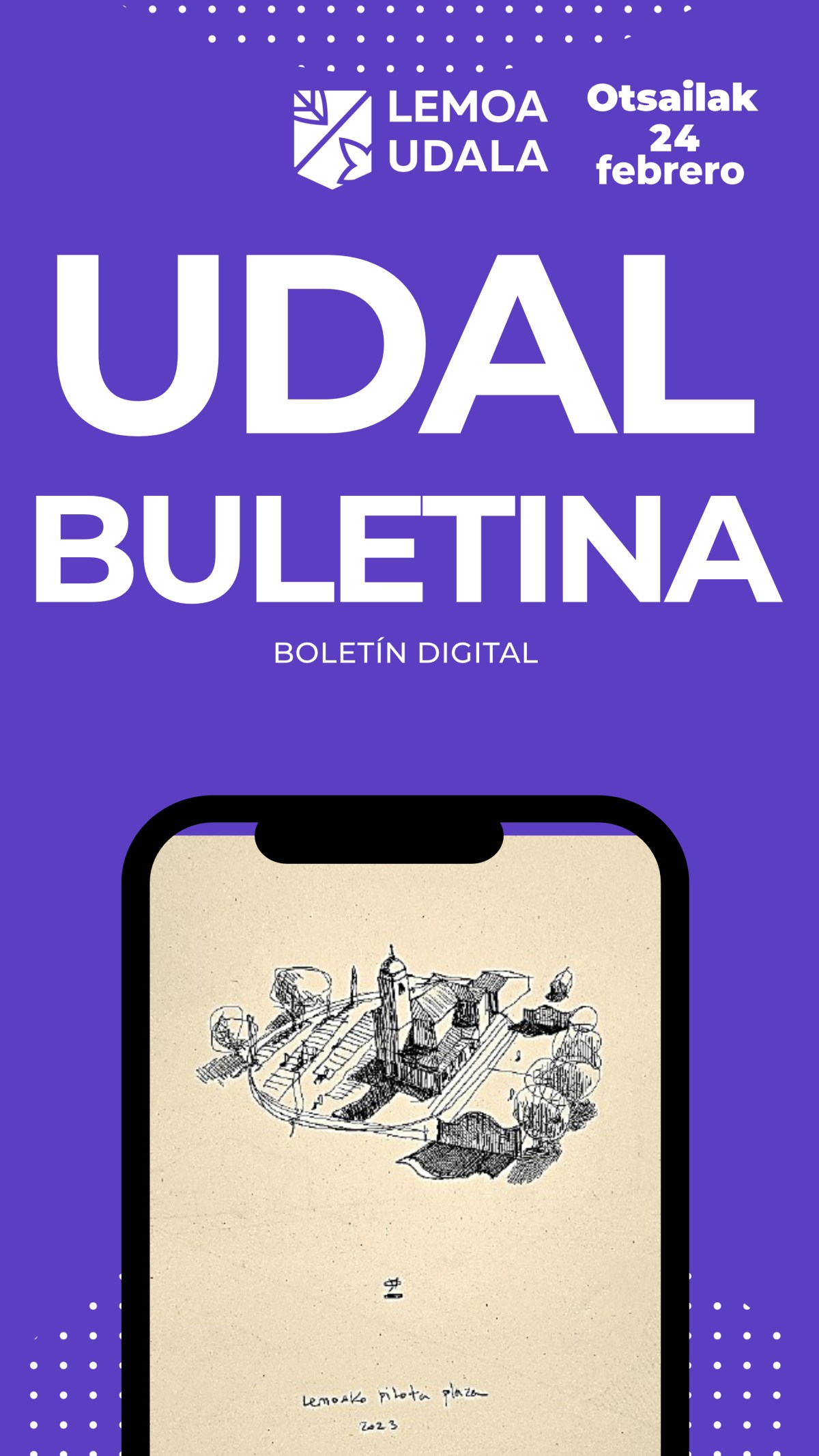 Atalak Udal buletina- Boletín digital Udal Buletina Otsailak 24 febrero Gehiago irakurri titularraren gainean klikatuz Leer más haciendo click sobre el titular Post author Garatzailea: lemoatzen Post date 2023-02-23 Boletín Municipal Pilota plazaren proiektuan elkarlanean ari dira Lemoako Udala eta Esku Pilota elkartea – El Ayuntamiento de Lemoa y el grupo de Esku Pilota trabajan conjuntamente en el proyecto del frontón descubierto Lemoako Berdintasunerako Herritarren Gunea sortu da – Nace el Foro para la Igualdad en Lemoa Kotxe betea zilegi balitz -Todos en coche a todas partes Lemoa Pausoz Pauso 2023ko erronkan parte hartu nahi duzu?-¿Quieres participar en el reto Lemoa Pausoz Pauso 2023? Udako igerilekuetako taberna ustiatzeko lizitatzeko epea ireki da – Abierto el plazo de licitación para llevar a cabo la explotación del bar de las piscinas de verano Juan de Ajuriagerra kaleko zebrabidearen kokapen berria – Nueva ubicación del paso de cebra de la calle Juan de Ajuriagerra Ibaizabal parkea, zabalik barriro! – ¡Se reabre el parque Ibaizabal! Ostera be erabili 2023 Lemoan Lan: asteroko lan postu eskaintzak – Ofertas semanales de empleo Euskara ikasleen tostada lehiaketa egin da eguaztenean – Concurso de tostadas del alumnado de euskera Zuhaitz eguna Balbea Comparte: Share on X (Opens in new window) X Share on Facebook (Opens in new window) Facebook Atsegin dut Kargatzen... Etiketak Pilota plaza ← Kotxe betea zilegi balitz -Todos en coche a todas partes → Udako igerilekuetako taberna ustiatzeko lizitatzeko epea ireki da – Abierto el plazo de licitación para llevar a cabo la explotación del bar de las piscinas de verano