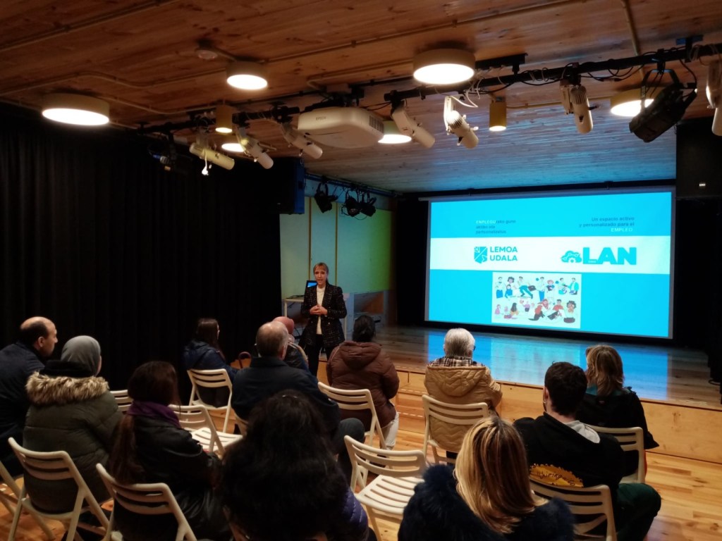 [cas] Tras el exhaustivo estudio del mercado laboral de la localidad realizado, teniendo en cuenta el entramado empresarial de Lemoa y la ciudadanía, ha dado comienzo Lemoan Lan, un programa puesto en marcha por el Ayuntamiento de Lemoa con la finalidad de facilitar la inserción y recolocación profesional a personas empadronadas en la localidad.