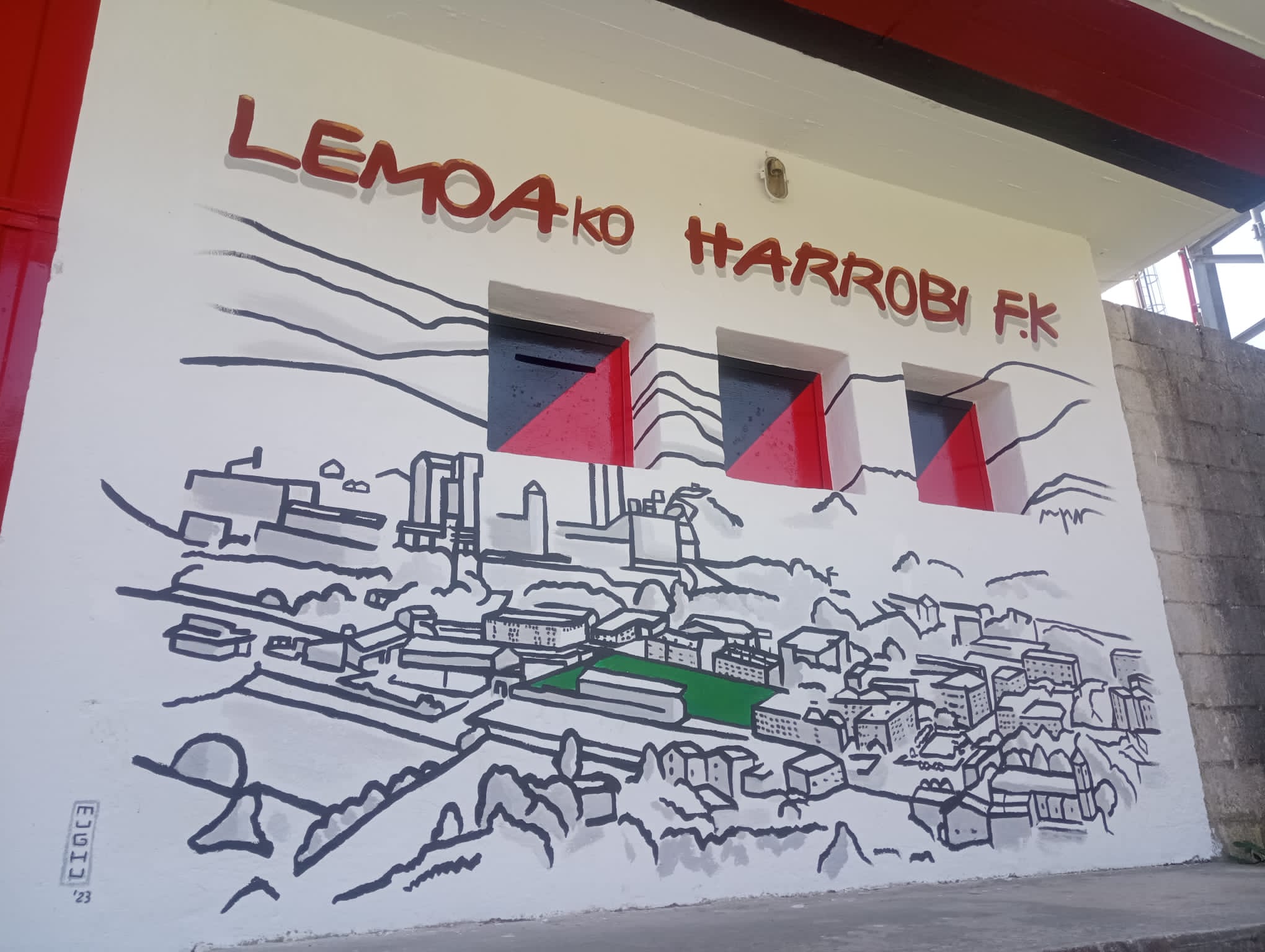 [Eus] Orain dela hilabe batzuk udalak futbol zelaiko harmailetan obra egin zuen, zeuden hezetasun arazoak konpontzeko eta hauen segurtasuna bermatzeko. Harmailak konpondu eta margotu zituen, baita aldagelak ere (barrutik eta kanpotik). Oraingoan, Harrobik muralak egin ditu Arlonagusiko harmailaren atzealdean eta zelaiaren sarreran. [Cas] Hace unos meses el Ayuntamiento realizó una obra para solucionar los problemas … Irakurtzen jarraitu Arlonagusiak mural berria du-Arlonagusia tiene un nuevo mural