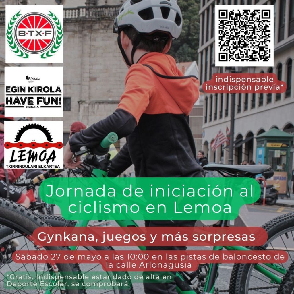 [cas] En Lemoa se cuida la afición al ciclismo desde la infancia. Prueba de ello es la jornada de iniciación al ciclismo de este sábado, con actividades tales como Gynkana, juegos y más sorpresas.