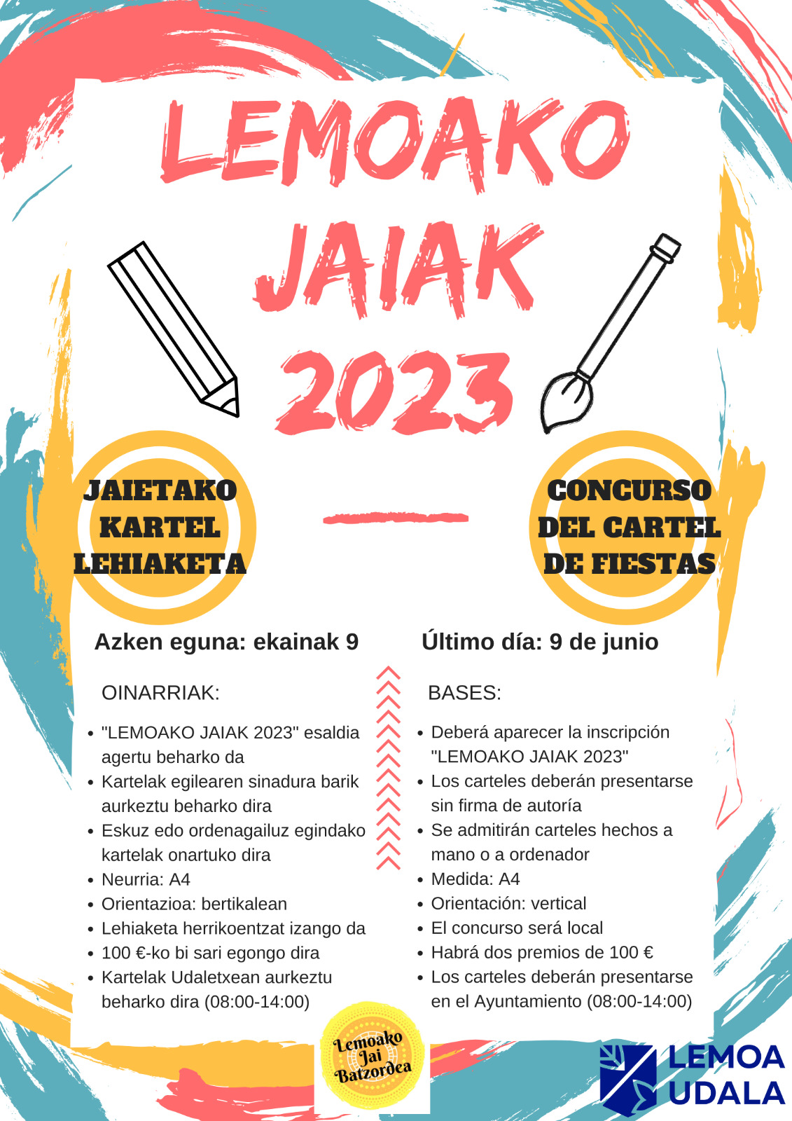 [eus] Kartel lehiaketara lanak aurkezteko epea gaur 14:00etan itxiki da, beraz, oraindik garaiz zabiltza zure ideia paperera eraman eta lehiaketara aurkezteko. Zorte on!