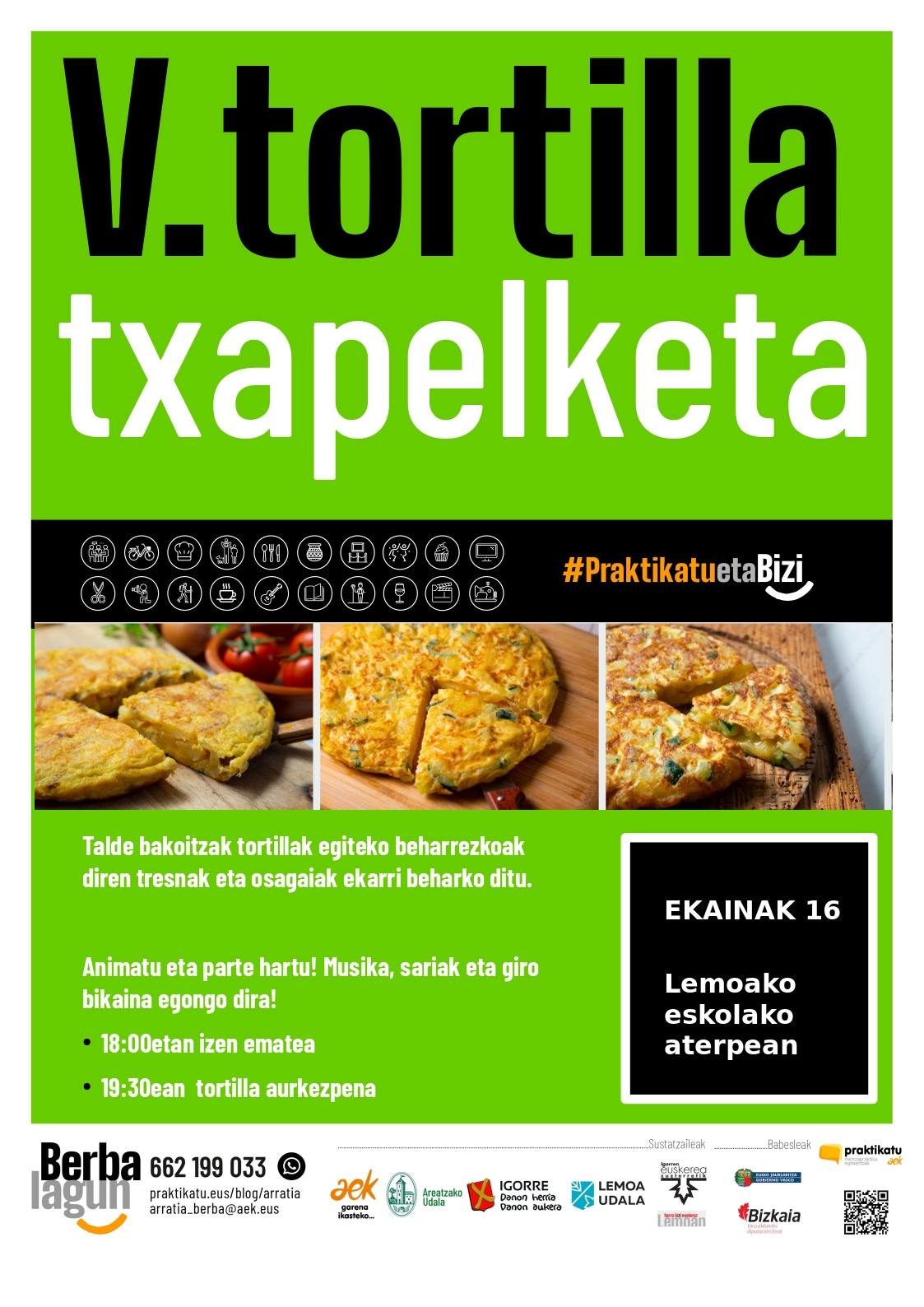 [cas] La dinámica Berbalagun de Lemoa ha organizado la quinta edición del concurso de tortillas, que se celebrará hoy viernes.