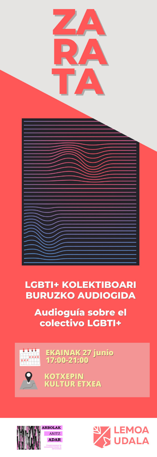 En mi caso quería crear un producto artístico que pudiera perdurar en el tiempo y me diera cierta estabilidad económica. Formo parte del colectivo LGBTI+ y pensaba en aumentar la visibilidad del colectivo pueblo a pueblo. Sabía que no quería crear una obra de teatro (además, muchos pueblos de Euskal Herria no tienen teatro), me di cuenta de que quería crear una pieza de otro formato, y al final, ZARATA ha tomado el formato de audio guía. En resumen, los diferentes estímulos que tenía los uní y nació ZARATA.