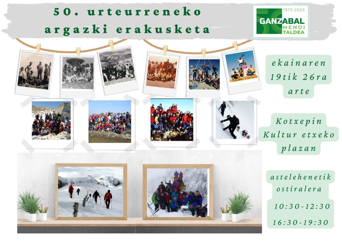 [eus] Erakusketak mende erdiko argazkiak biltzen ditu: igoera-une bereziak, naturgune ikusgarriak, eta baita parte-hartzaileen arteko adiskidetasun momentan ere.