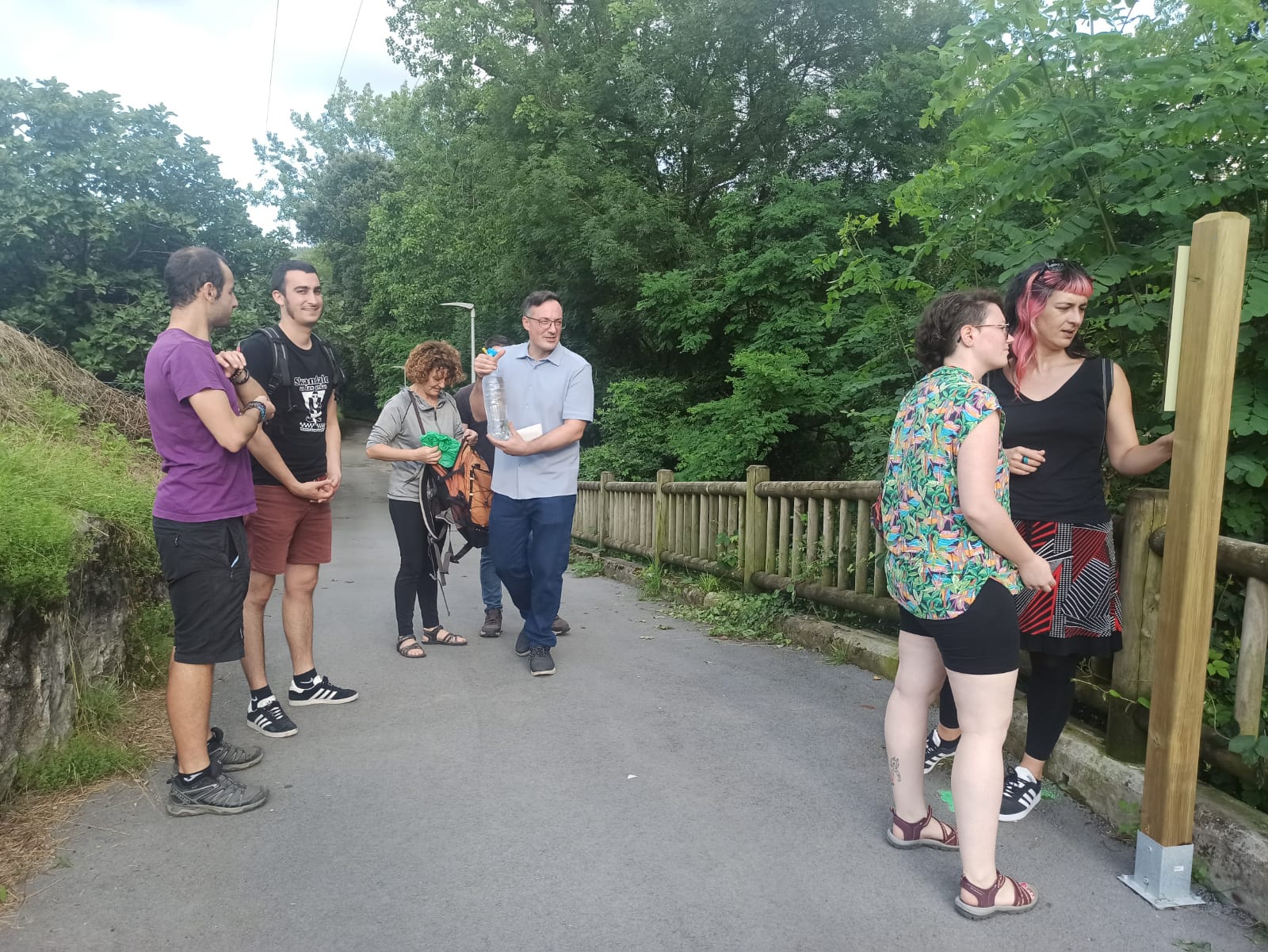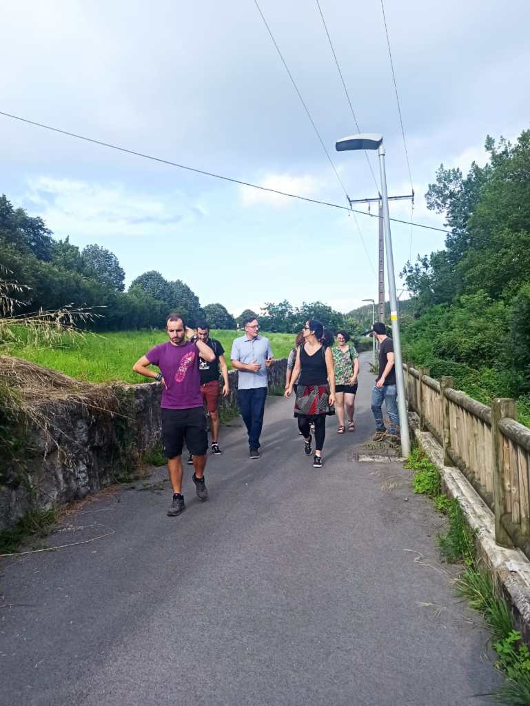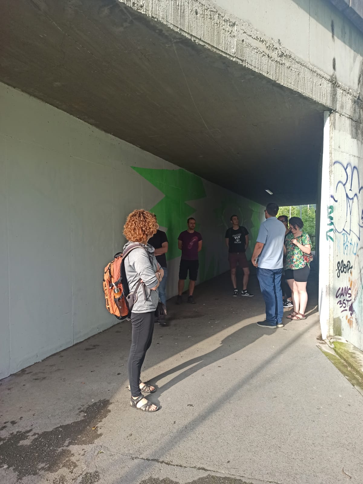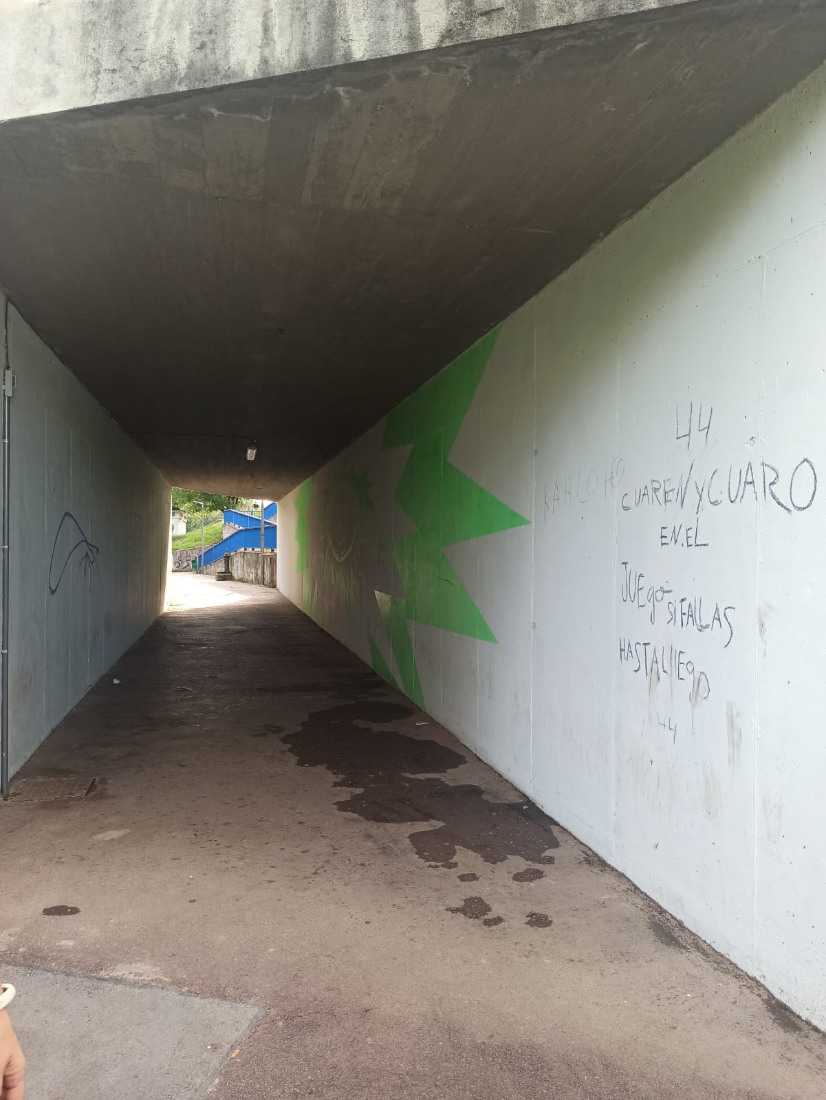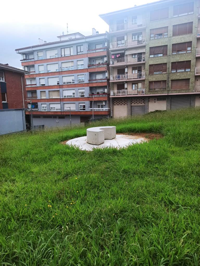 [cas] Pese a ser una actividad programada para la Semana de la Memoria y la Cultura, se retrasó debido al mal tiempo, y finalmente pudo llevarse a cabo la semana pasada. Iker Vázquez ha realizado cuatro intervenciones tomando como referencia el periodo de la guerra civil: las frases escritas en el asfalto, la imagen en el túnel, el banco de piedra y los arboles.