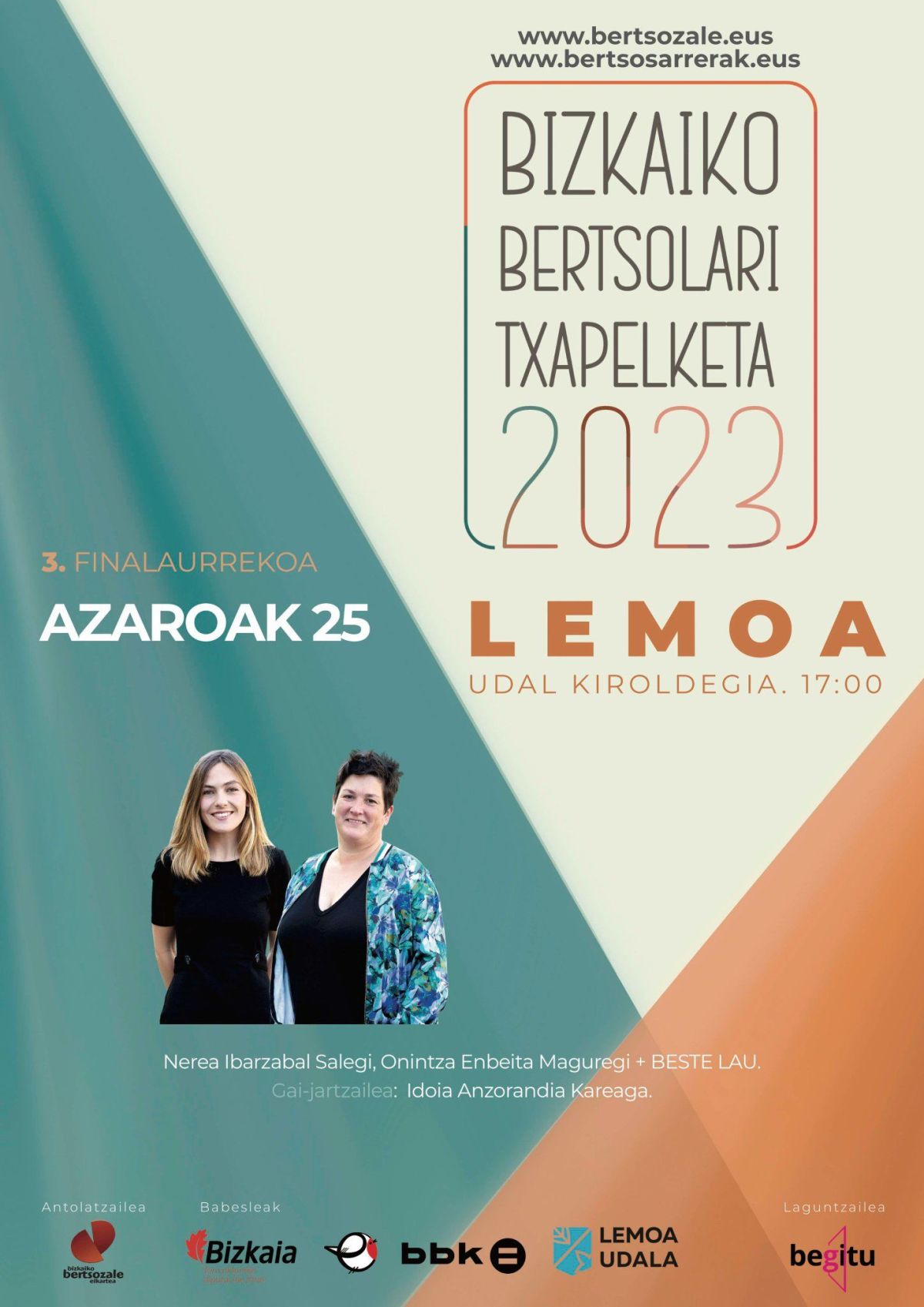 [Eus] Aste honetan bertan jakin dugu 2023ko Bizkaiko Bertsolari Txapelketaren azken finalaurrekoa Lemoan izango dela azaroaren 25ean. Gorde data!