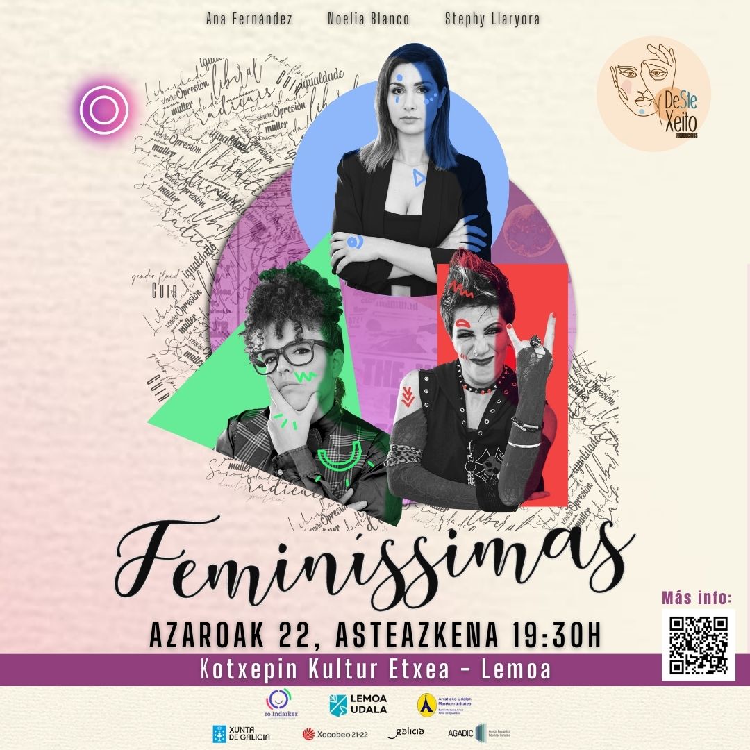 [Esp] Entre las iniciativas del Día Internacional para la Eliminación de la Violencia contra las Mujeres, el miércoles 22 de noviembre tendrá lugar en Lemoa la representación de la obra “Feminíssimas”. Será en castellano, a las 19:30 horas en la casa de cultura Kotxepin.