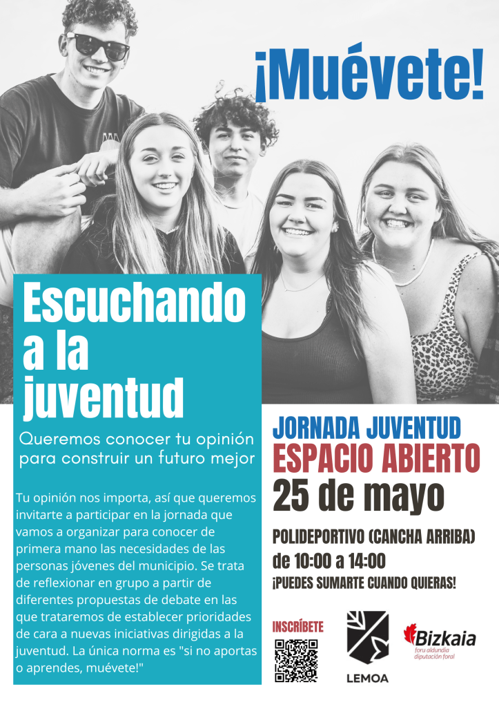 [eus] Lemoako Udalak udalerriko gazteen (16-29 urte) beharrei eta interesei buruzko diagnostikoa egingo du. Hori dela eta, Gune Irekia Jardunaldia antolatu du.