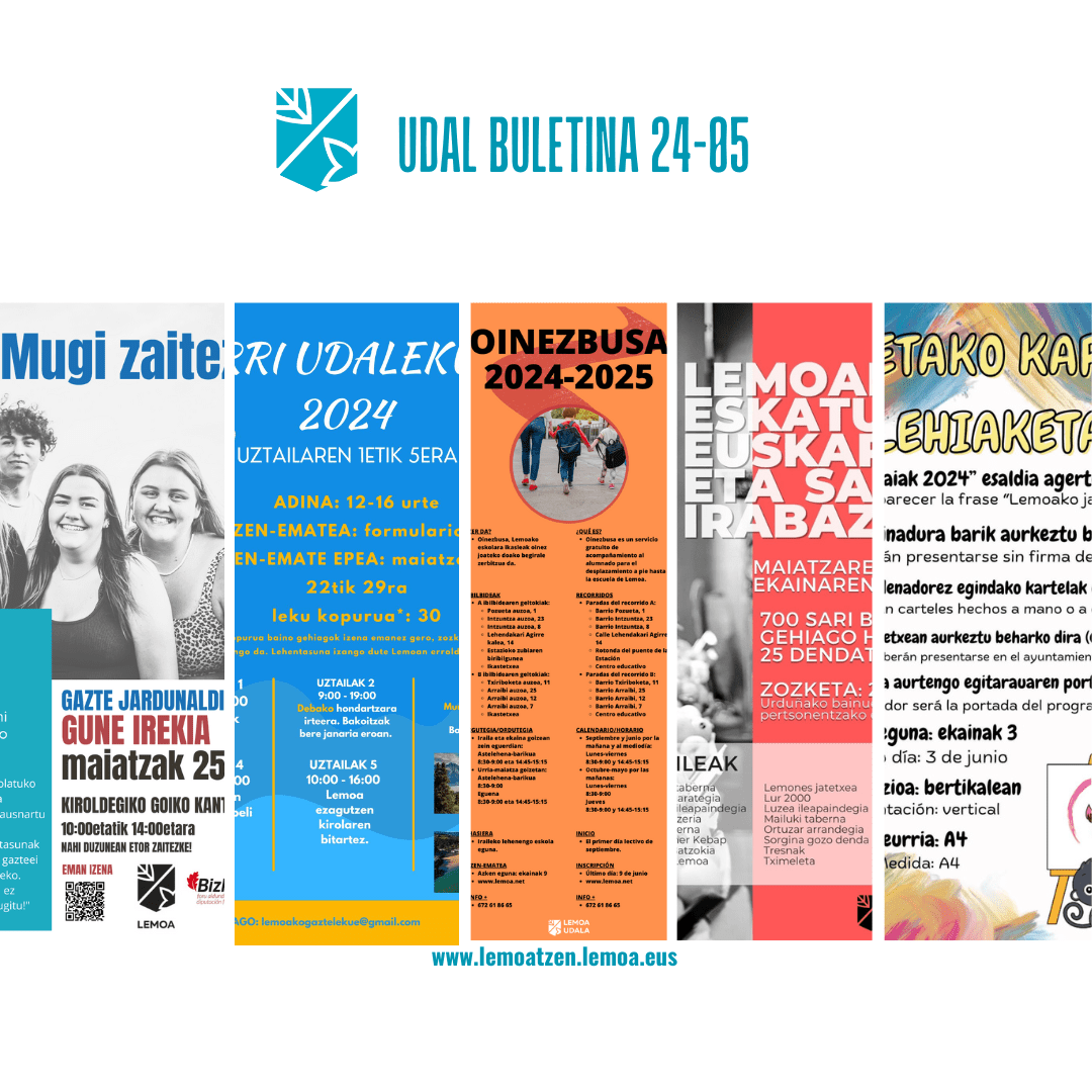 Atalak Udal buletina- Boletín digital Udal Buletina Maiatzak 24 de mayo Gehiago irakurri titularraren gainean klikatuz Leer más haciendo clic sobre el titular Post author Garatzailea: lemoatzen Post date 2024-05-24 Sticky post Boletín Municipal Gazteei entzuten – Escuchando a la juventud Arraibiko futbito-zelairako sarrera irisgarri berria – Nueva entrada accesible al campo de futbito de Arraibi Lemoak Kerik Gabeko Astea izango du maiatzaren 24tik 31ra – Lemoa celebra la Semana Libre de Humo del 24 al 31 de mayo Arratiako Lehen Mailako Arreta Unitatean, kolon eta ondesteko minbiziaren beste baheketa-txanda bat hasi da – Ha comenzado en la Unidad de Atención Primaria de Arratia una nueva ronda del Cribado de Cáncer Colorrectal Herri udalekuak 2024 – Colonias de verano municipales 2024 Euskara sustatzeko merkataritza kanpainan parte hartu dute Lemoako 25 dendek eta tabernek – 25 comercios y bares de Lemoa participan en la campaña comercial de promoción del euskera Oinezbusa 2024-2025 Elkartrukea 2024: osasun mentala eta gazteak – Salud mental y juventud Gogoratu kartel lehiaketan parte hartzeko epea ekainaren 3an itxiko dela – Recordad el plazo para participar en el concurso de carteles finaliza el 3 de junio Lemoatx elkartearen irteera Santo Domingo de la Calzada eta Ezcarayra – Excursión de la asociación Lemoatx a Santo Domingo de la Calzada y Ezcaray “Lemoa: Arratiako tranbiaren bihotza” erakusketa maiatzaren 31ra arte egongo da ikusgai – La exposición “Lemoa: centro neurálgico del tranvía de Arratia” se podrá visitar hasta el 31 de mayo Itzal(iko) bagina: bertsoa oinarritzat duen antzerki ikuskizuna – Un espectáculo teatral basado en el bertso “Pituxa Clowntu kontari”: umeentzako ipuin kontaketa – Cuentacuentos infantil Korrontzi Kotxepinen izango da ekainaren 7an! – ¡Korrontzi actuará en Kotxepin el 7 de junio! Lemoan Lan: asteroko lanpostu eskaintzak – Ofertas semanales de empleo Comparte: Share on X (Opens in new window) X Share on Facebook (Opens in new window) Facebook Atsegin dut Kargatzen... ← Lemoan Lan: asteroko lanpostu eskaintzak – Ofertas semanales de empleo → Lemoan Lan: asteroko lanpostu eskaintzak – Ofertas semanales de empleo