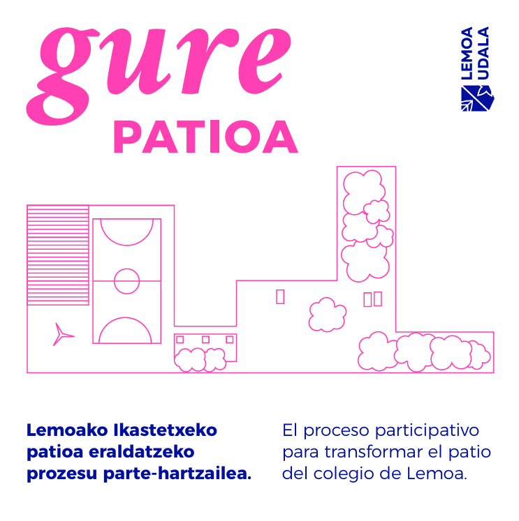 [eus] Lemoako Ikastetxeko patioa eraldatzeko prozesu parte-hartzailearen parte izateko momentua heldu da. Guraso, ikasle, ikasle ohi edo herritarra bazara, erdu EKAINAREN 18an 17:30tan eskolako patiora. Denok batera imajinatuko dugu beste patio posible bat. Laster arte!