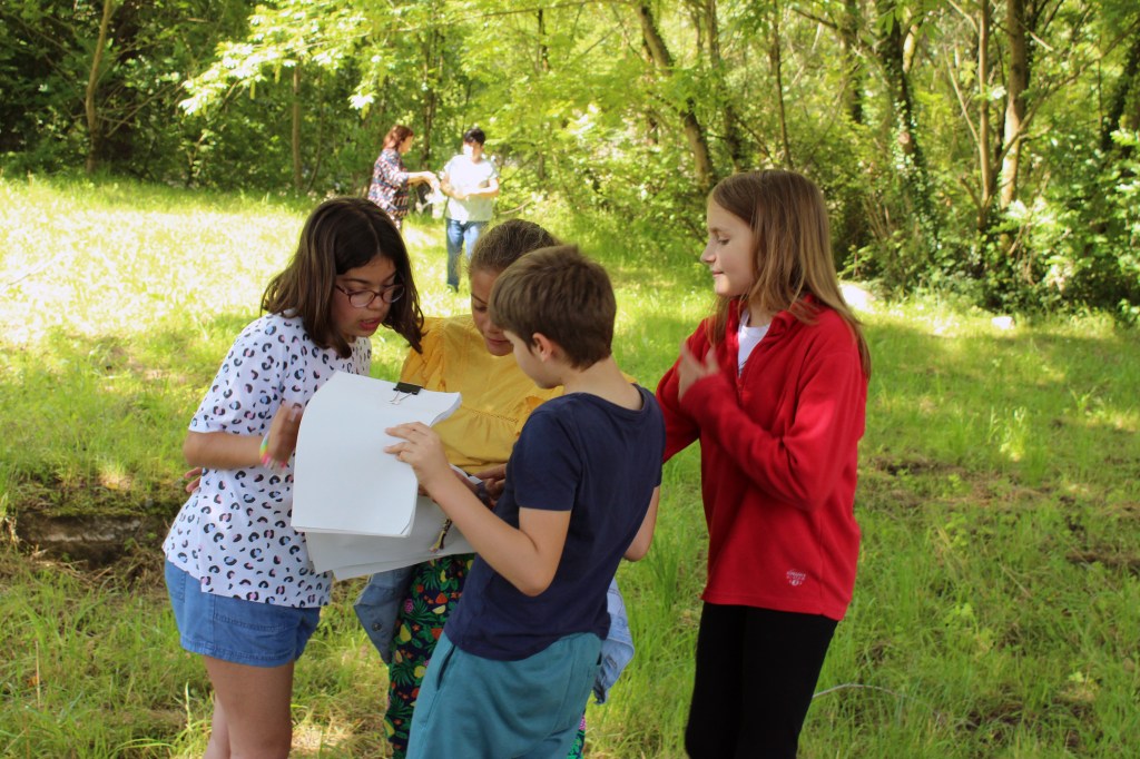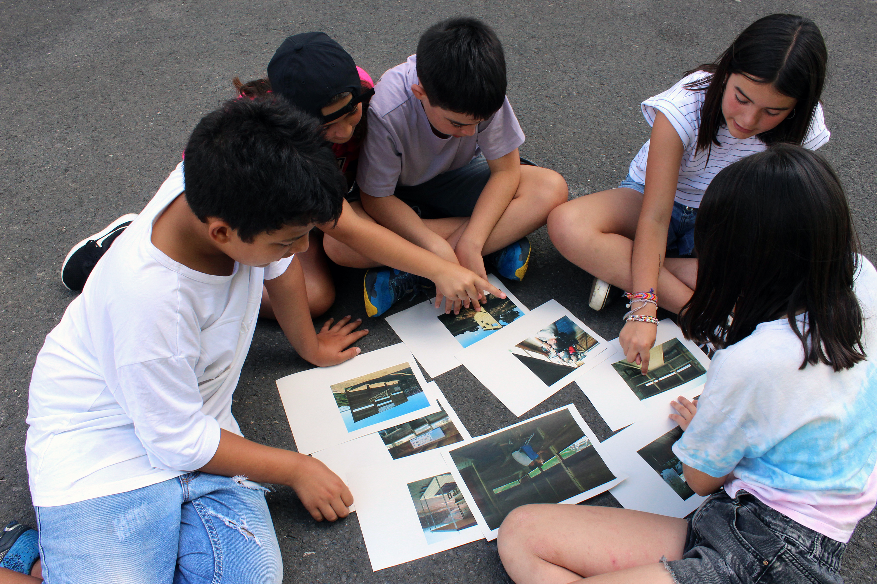 La aparejadora Kontxi apunta todo y lo añade a su plano. En otoño retomaremos las reuniones del Consejo de Infancia de Lemoa y realizaremos un seguimiento con la Alcaldesa del proceso de transformación del Observatorio y del parque.