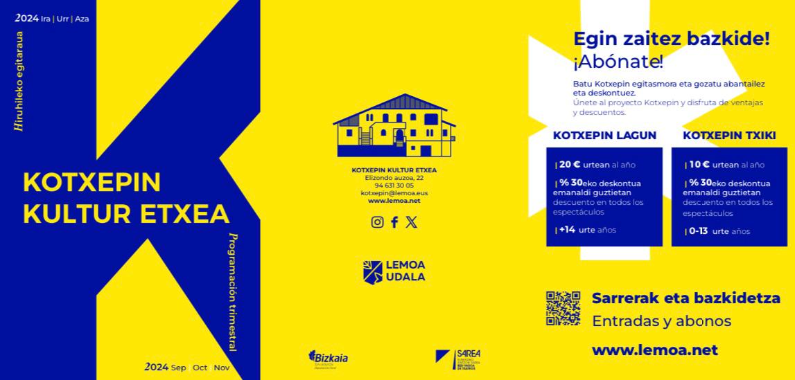 Kotxepin Kultur Etxea: hiruhileko programazioa – Programación trimestral