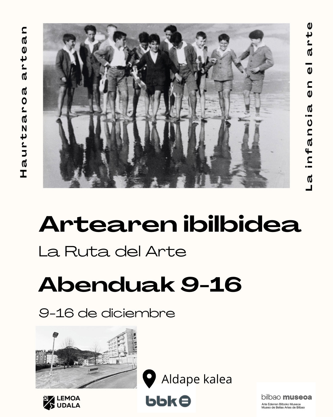 [cas] El Ayuntamiento de Lemoa, en colaboración con la BBK y el Museo de Bellas Artes de Bilbao, traerá a Lemoa, del 9 al 16 de diciembre, el proyecto la “Ruta del Arte”. Esta iniciativa se enmarca en el programa Herriz Herri impulsado por la BBK y ayuntamientos de Bizkaia para promover acciones conjuntas con impacto social positivo. El objetivo es acercar el arte y la cultura a la ciudadanía a través de reproducciones de obras de gran calidad en espacios públicos.