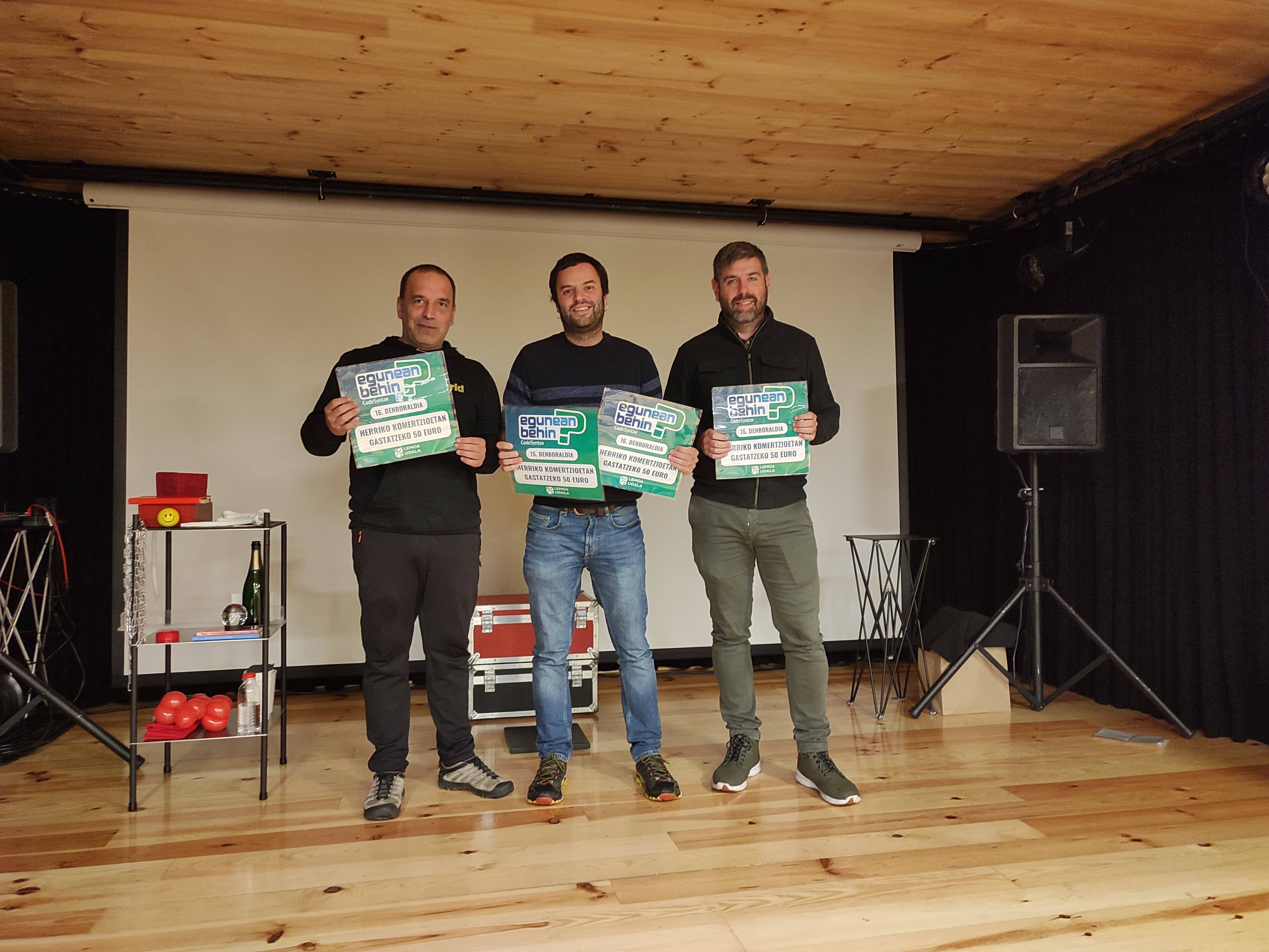 Para empezar, se entregaron los premios del juego Egunean Behin, correspondientes a las temporadas 15 y 16. El equipo de Lemoa de este juego lleva en marcha desde 2020 y siempre ha ganado la misma persona. Aritz está a otro nivel, camina entre los mejores jugadores de Euskal Herria y tendrá como premio un bono para gastar en los comercios de la localidad, mientras que Izkander y Kepa tendrán el mismo premio obtenido mediante sorteo.