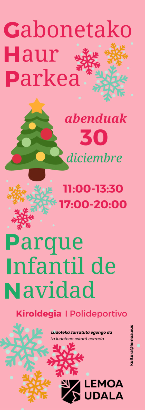 [eus] Aurten ere Gabonetako Haur Parkea izango dugu abenduaren 30ean, goiz eta arratsaldez. Erdu!