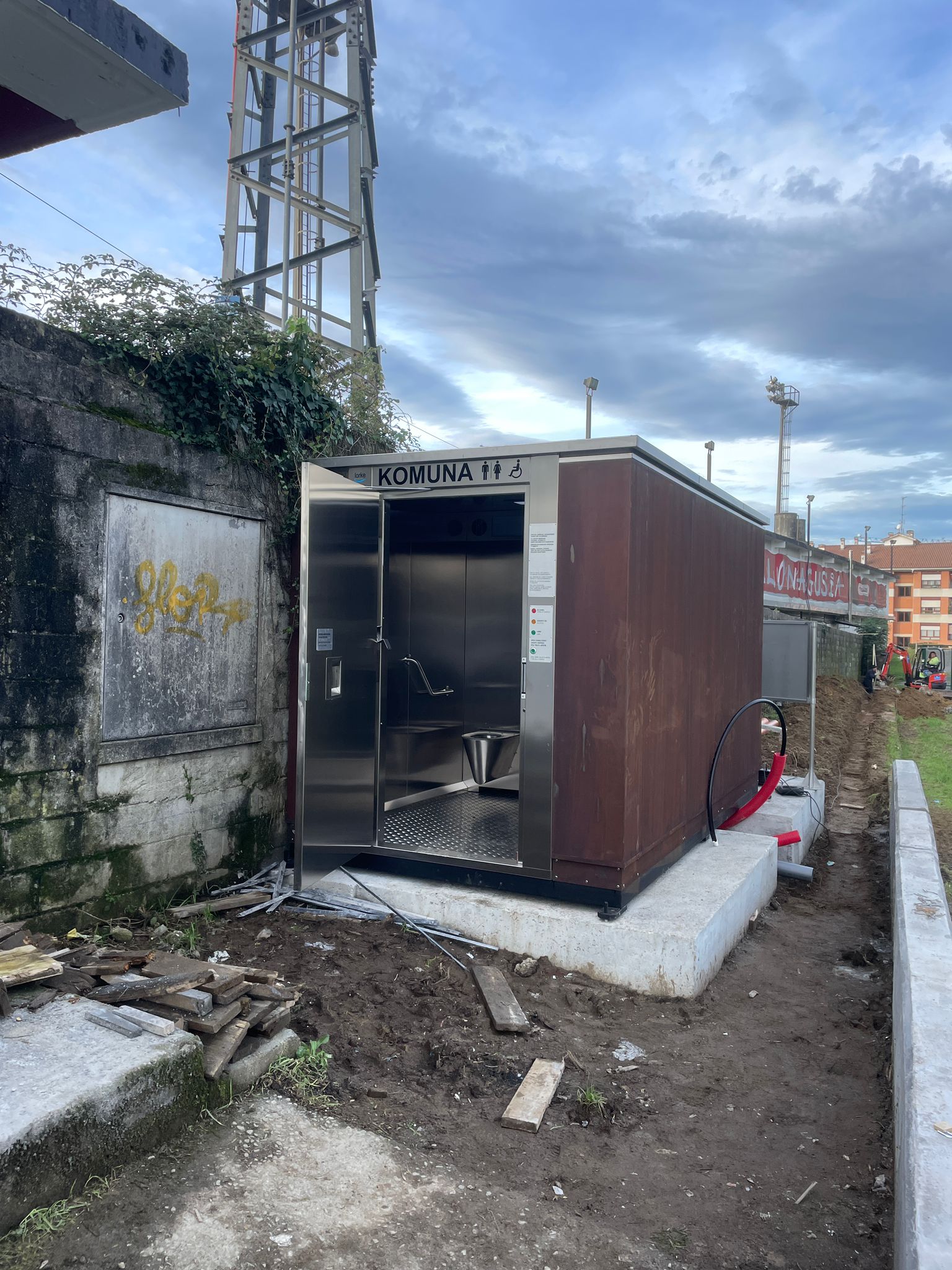 [eus] Lemoako Udalak komun publikoa jarri du futbol-zelaiaren kanpoaldean inguruko guneetako erabiltzaileen beharrei erantzuteko. Udalak 18.266 € inbertitu ditu jarduketa horretan. [cas] El Ayuntamiento de Lemoa instala un baño público en el exterior del campo de fútbol para atender las necesidades de las personas usuarias de los espacios del entorno. El Ayuntamiento ha invertido 18.266 €.