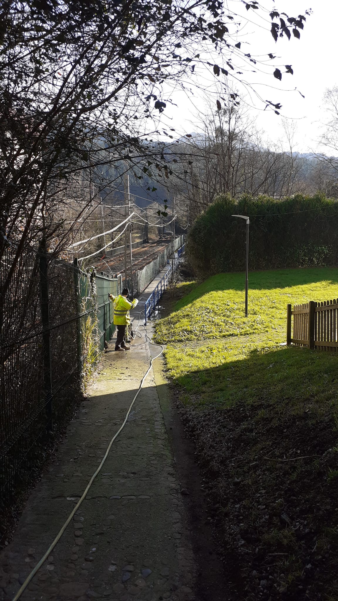[cas] Con el fin de garantizar la seguridad de los peatones y evitar resbalones y caídas, el Ayuntamiento está llevando a cabo un tratamiento antideslizante en el camino peatonal que une Arraibi y Larrabeiti.