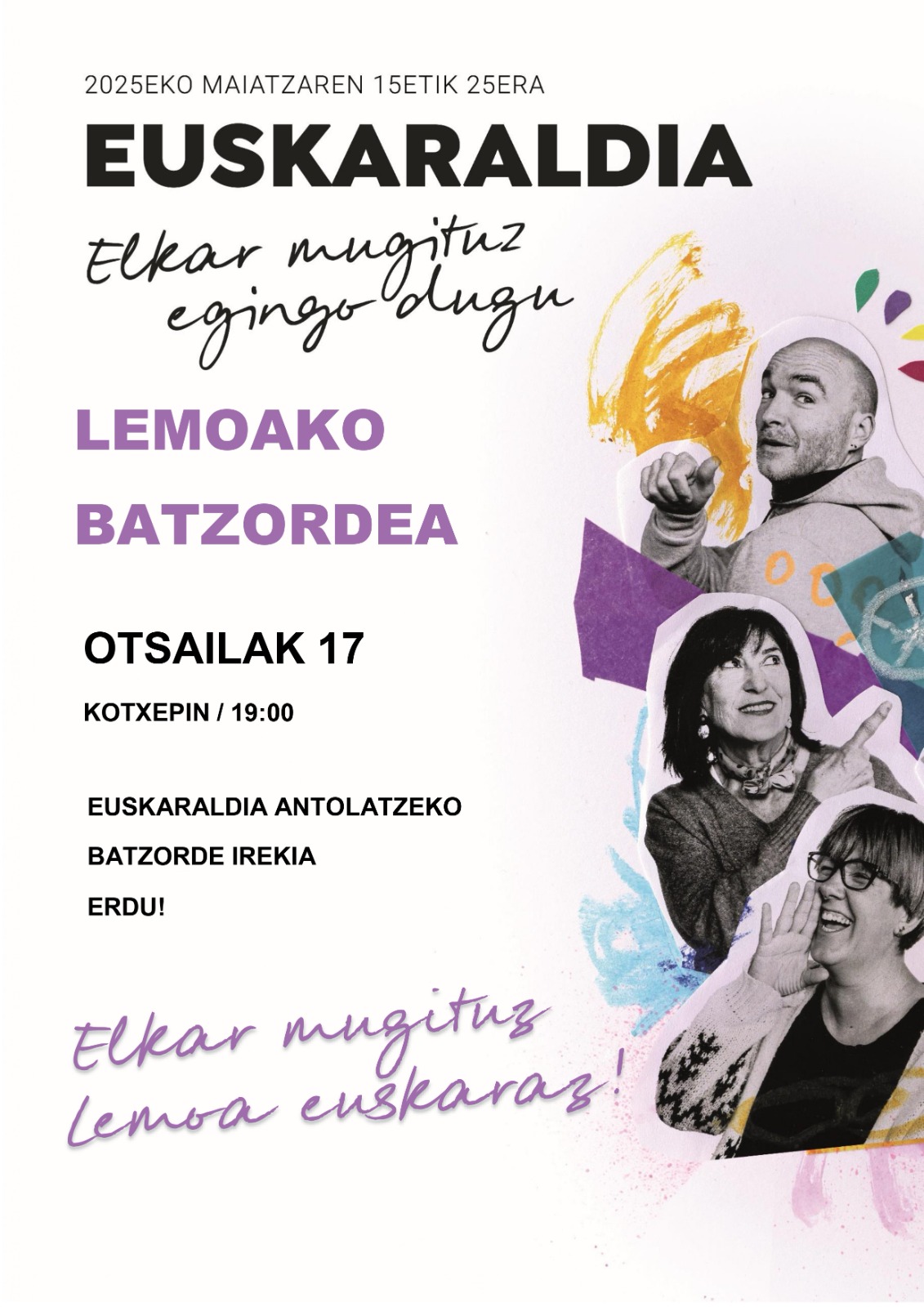 [cas] En Lemoa queremos vivir el Euskaraldia con orgullo y, para ello, necesitamos un grupo potente. ¡Ven a la reunión que tendrá lugar el 17 de febrero a las 19:00 en Kotxepin!