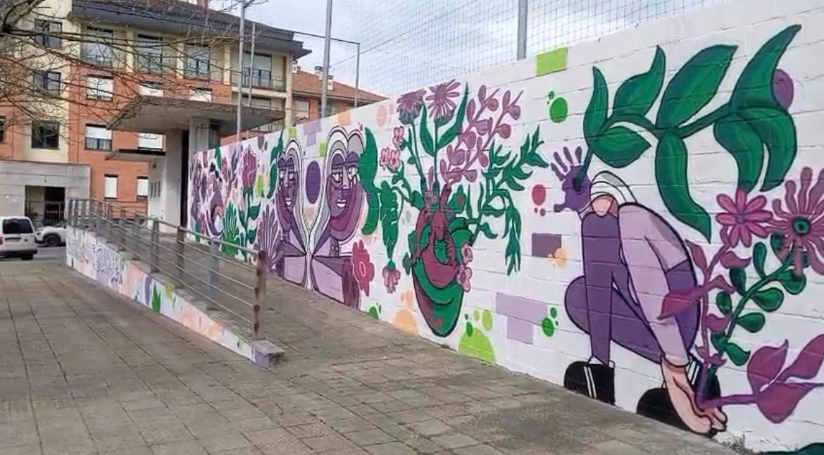 [eus] Udalak bukatu du martxoaren 8aren testuinguruan herritarrekin batera margotzen hasi zen murala. “Indarkeriarik gabeko gorputz eta lurraldeak” dio leloak, eta adin guztietako herritarrek batu ditu berdintasunaren alde: denak elkarrekin, emakumeak aitortuz, ikusaraziz eta omenduz.