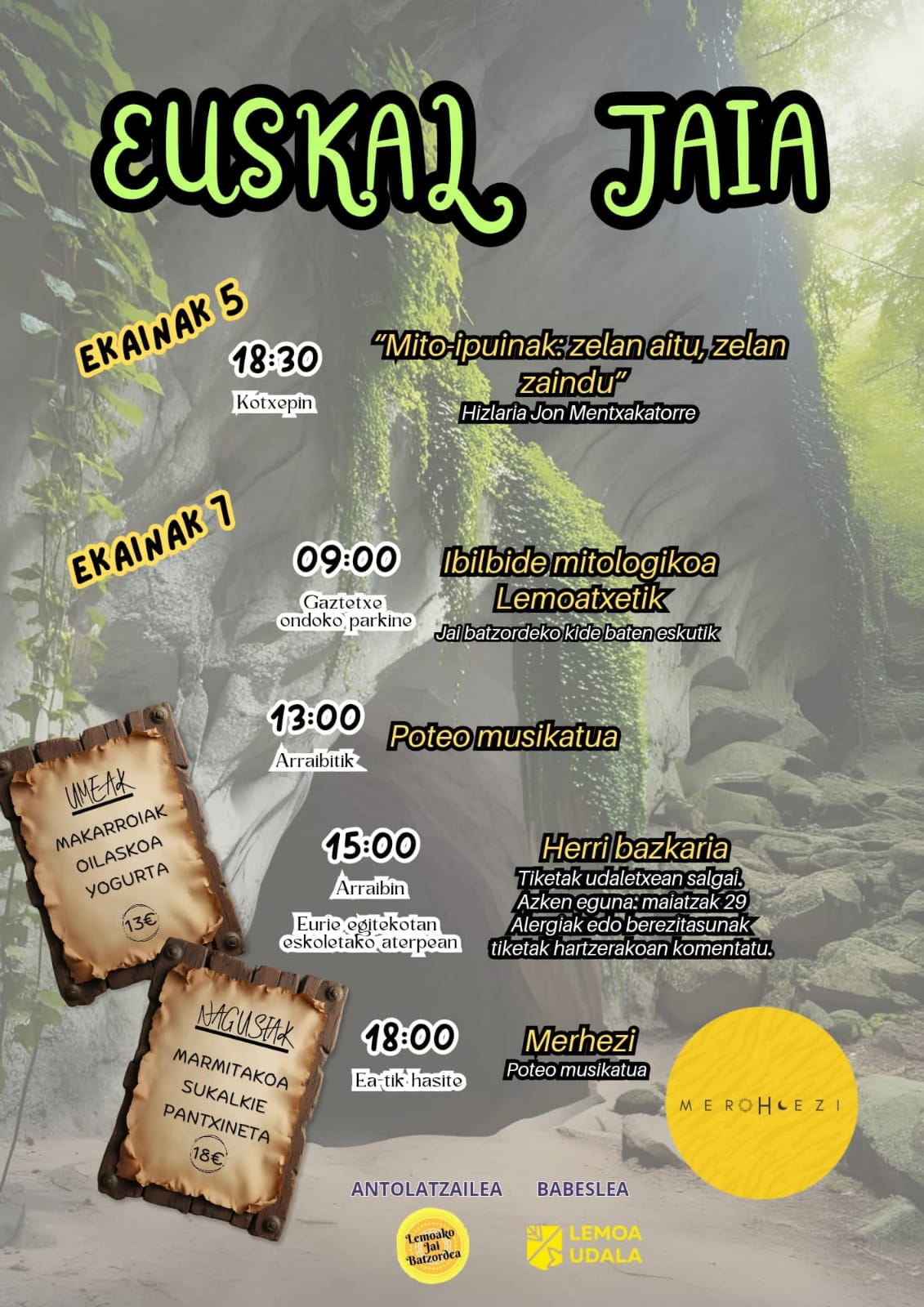 [eus] Euskal Jaiak egitarau oparoa izango du aurten ere. Ekainaren 7an izango da eta egun osoan zehar hamaika ekintzaz gozatzeko aukera izango dute Lemoako herritarrek: ibilbide mitologikoa Lemoatxetik, poteo musikatua eta herri bazkaria.