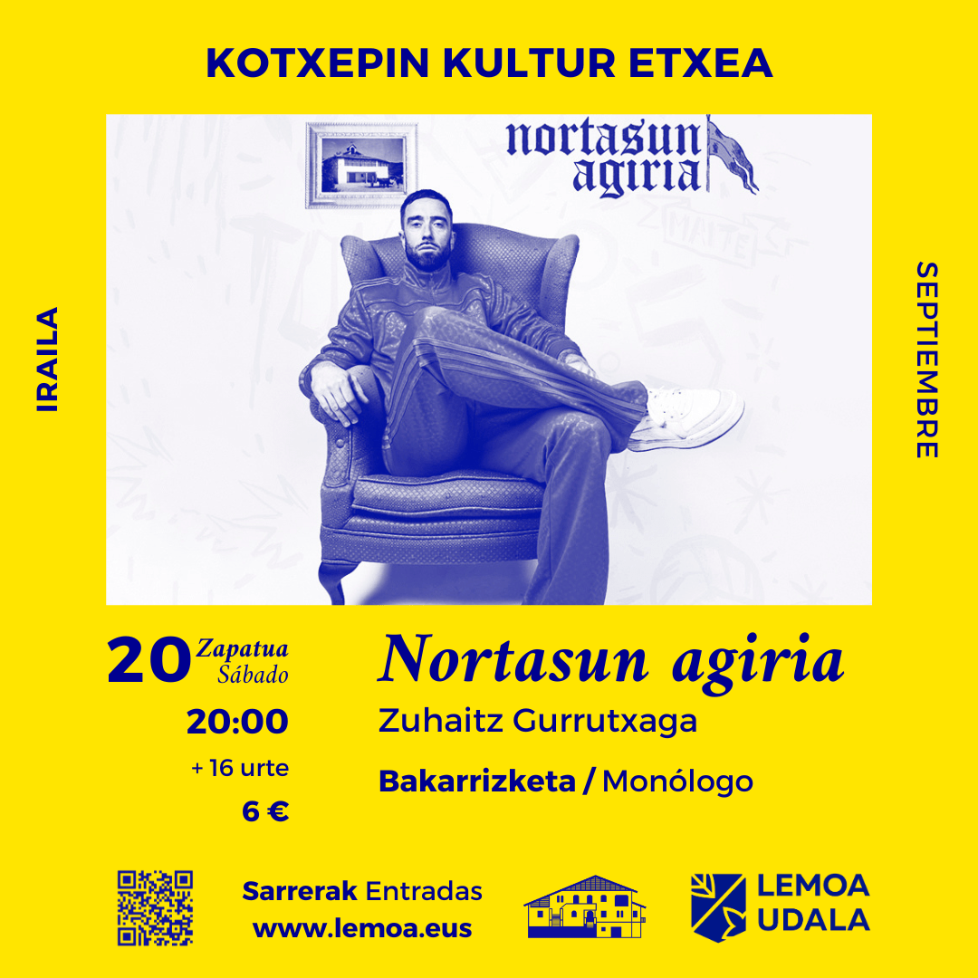 Las entradas, con un precio de 6 €, pueden adquirirse en la web municipal: https://kultura.lemoa.net/sarrerak.