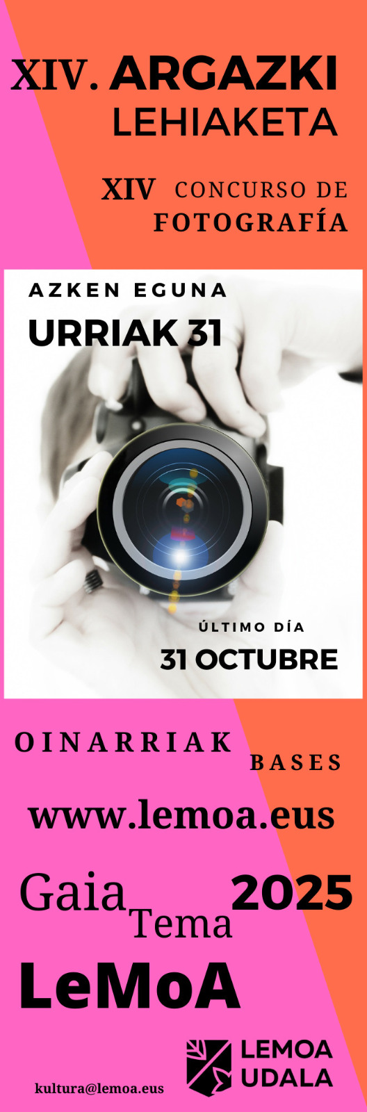 [eus] Argazkilari arima duzu? Lemoari eta bere jendeari buruzko ikuspegi berezi eta bakarra daukazu? Lemoako XIV. argazki lehiaketa martxan da jada. Anima zaitez eta bidali zure argazkia!